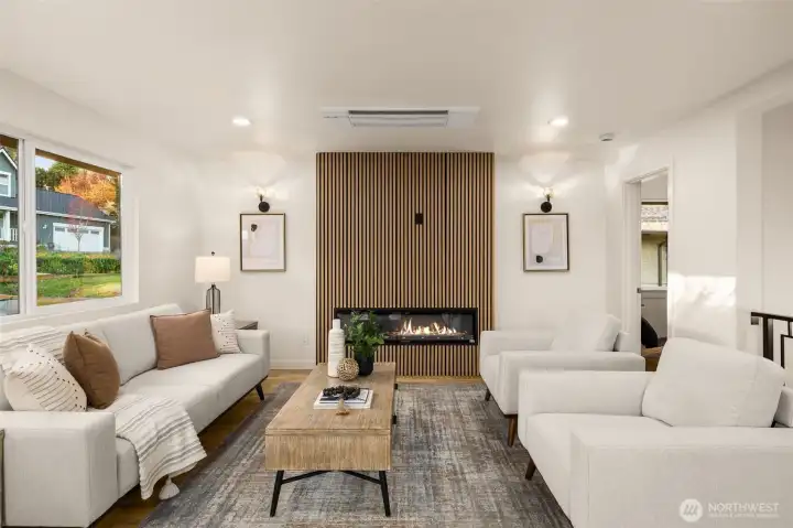 Thoughtfully reimagined and fully renovated. This 5BD home blends standout design with rare versatility—featuring a vaulted, light-filled main level, designer chef’s kitchen, expansive lower level w/ wet bar, detached garage, and oversized shop w/ 220V + future potential. Backing to a serene North Seattle greenbelt connected to Interurban Trail North, which spans over 30 miles! This 2,418 SF home offers privacy and flexibility. For a limited time, lock in a 4.99% rate on a 10 year ARM when using our preferred lender! (Terms apply)* Soaring ceilings and an open layout highlight a custom wood-slatted fireplace wall, white oak hardwoods, and refined details throughout. The kitchen impresses with a polished quartz waterfall island, custom walnut cabinetry, and black stainless Samsung appliances, flowing seamlessly to the deck for indoor-outdoor living. Main-level primary suite includes deck access, greenbelt views, dual vanity, tiled shower, and linen storage. The finished, waterproofed lower level offers a massive rec room, wet bar, 3 bedrooms, full bath, and mudroom w/ laundry—ideal for guests or multi-gen living. Mini-split system provides efficient zoned comfort. Detached garage + shop creating endless possibilities to create a space of your own. This is a rare blend of design, comfort, and future upside. This is what you’ve been waiting for!
