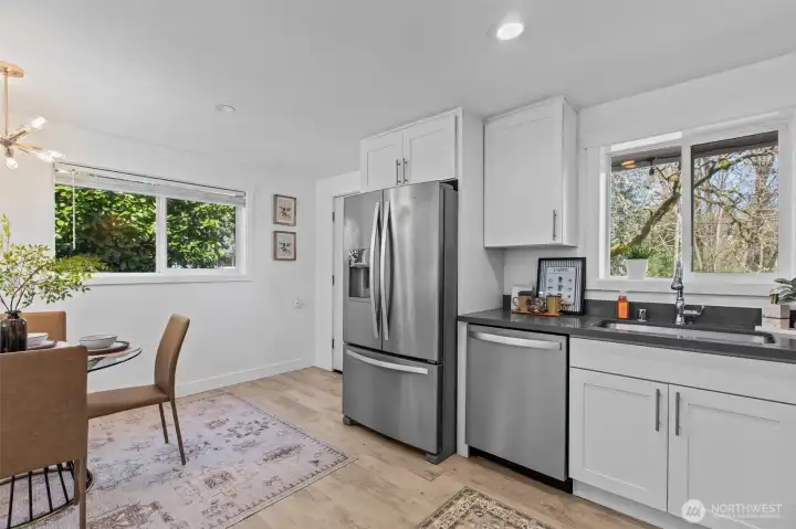 Experience the perfect blend of comfort and sophistication in this beautifully updated Maple Leaf home. Your new home is situated on a huge lot featuring fully fenced private back yard with a firepit and patio that stays dry all year around. Inside you'll find a fully updated home with modern appliances, cabinets, quartz countertops & LVP flooring. Downstairs is the laundry room and a large primary bedroom with a walk-in closet and dual sink vanity, it's also perfect for a guest suite or possible ADU. The garage is EV ready with your own driveway and plenty of street parking. You won't find another turnkey home on a flat 9,500sf lot at this price. This home is ready for you to make it yours and be delighted!