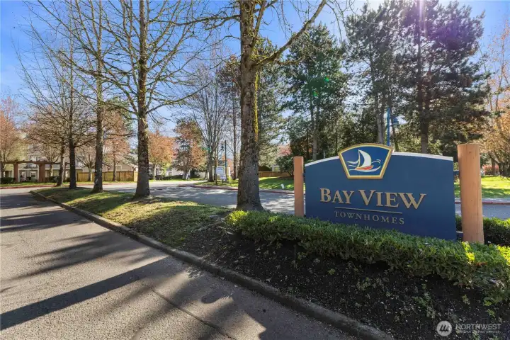 Beautiful corner-unit townhome in desirable Bayview at The Lakes in Kent! Light-filled with 9-ft ceilings, spacious living room with gas fireplace, and an open layout. Bright kitchen features granite counters, tile backsplash, and flows into dining area with access to a large balcony including an electric awning for those sunny days. Primary suite includes walk-in closet and dual-sink bath. Two additional guest bedrooms offer flexibility. Central heat and air too! Two-car garage with tons of storage, bonus room with patio access—ideal for storage, workspace, or hobbies or convert to additional space for rental or adu with its own entry. Convenient location near highways, light rail, parks, and shopping including the south center shopping area!