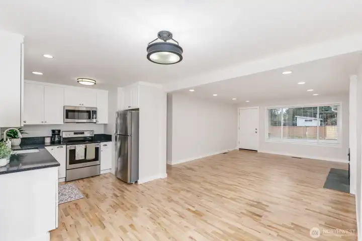 Nestled in the Queensborough area of Bothell, this charming renovated rambler seamlessly blends modern updates with comfortable living. The inviting home features a beautifully updated kitchen with new stainless-steel appliances and quartz countertops, while new hardwood floors and updated lighting throughout create a warm, welcoming atmosphere. The living room showcases a wood-burning fireplace and flows into a versatile space—perfect for hobbies, a work-from-home setup, or simply unwinding. Step outside to a fully fenced backyard with ample deck space, ideal for entertaining or outdoor gatherings. Additional highlights include a two-car garage and newer roof for peace of mind. Located in the award-winning Northshore School District, near public transportation and easy access to I-405.