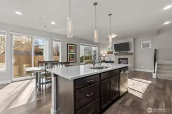 Welcome to this beautifully maintained home in the highly sought-after Kingstone Community. This 3-bedroom home with a large bonus loft and 2.5 baths offers the perfect blend of comfort, function, and thoughtful design. The main level showcases a spacious, open-concept layout with luxury LVP flooring and abundant natural light. A convenient half bath and generous entry closet add everyday functionality. The living area is anchored by a cozy gas fireplace, while the kitchen truly shines as a chef’s dream complete with quartz countertops, custom cabinetry, upgraded stainless steel appliances, a modern range hood, and a large island. Upstairs, enjoy a versatile loft, ideal for a media space or play area. The primary suite is a true retreat with vaulted ceilings, a spacious layout, a 5-piece bath with soaking tub and separate shower, and a generous sized walk-in closet. Two additional large bedrooms, a full bath, and a spacious laundry room complete the upper level. Additional highlights include a well-equipped garage with storage racking and sensor lighting, plus gated access on both sides. Step outside to a private patio and low-maintenance yard perfect for relaxing or entertaining. Ideally located near Alderwood Mall, Costco, dining, parks, and with easy access to I-5, I-405, and the Ash Way Park & Ride (future light rail). Located within the desirable Edmonds School District. Don’t miss this one! Schedule a tour today!
