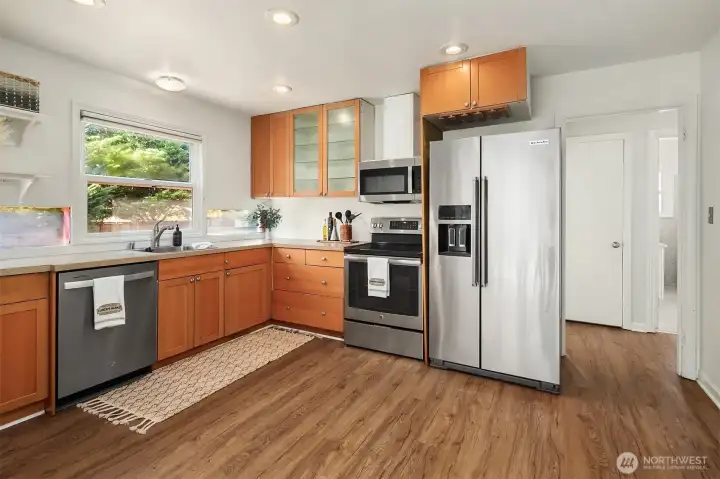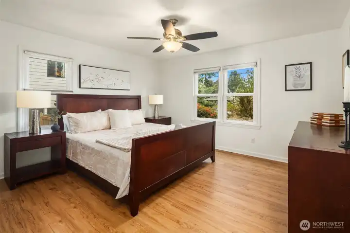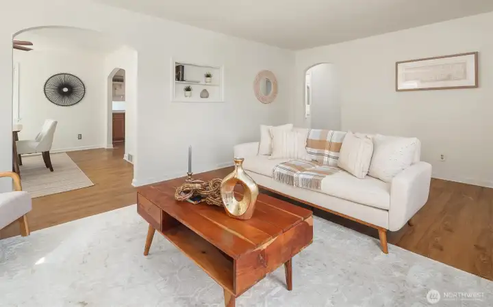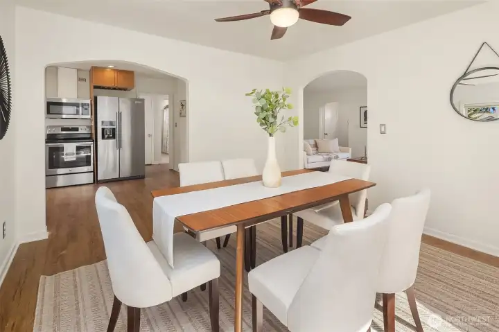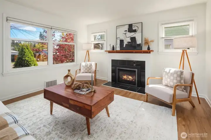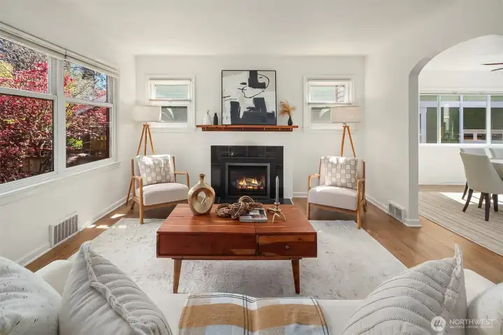 Charming 1940s home nestled in a private setting in Seattle’s sought-after Broadview neighborhood. This spacious 4-bed, 2-bath residence beautifully blends timeless character with everyday livability. The sun-drenched main floor features graceful archways that create a seamless flow between rooms, enhancing the home’s classic charm. Enjoy a bright and inviting living room with a cozy gas fireplace, a formal dining room, and a convenient main-level primary bedroom alongside a full bathroom. The kitchen features warm cabinetry with stainless steel appliances. Downstairs, the lower level offers excellent flexibility with a spacious rec room, an additional bedroom, a full bathroom, and a utility room perfect for guests, hobbies, or multi-generational living. Step outside to the deck and patio ideal for entertaining or relaxing along with a fenced backyard and generous garden space ready for your personal touch. A detached garage adds everyday convenience. Ideally located just minutes from parks, trails, K-8 Broadview-Thomson, Puget Sound beaches, and North Seattle amenities. Broadview is known for its peaceful residential feel while still offering easy access to everything you need. A rare opportunity to own a classic home in one of North Seattle’s most desirable neighborhoods.