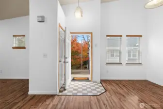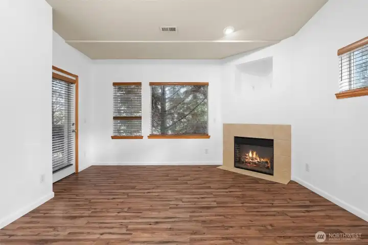 Welcome to this beautifully maintained 3-bedroom, 2-bath condo in the gated Custer Oaks community! This home offers an open-concept layout with vaulted ceilings, a cozy fireplace, and great natural light throughout. Step out onto your private, covered porch—perfect for year-round enjoyment. The spacious primary suite features a walk-in closet and a 5-piece ensuite with a soaking tub and oversized shower. The second bedroom is generously sized, while the third bedroom offers flexibility for guests, a home office, or both. The kitchen is functional and well-designed with a dedicated laundry and pantry area. Enjoy the convenience of a deep one-car garage with ample space for storage. Ideally located near shopping, dining, coffee shops, and with an easy commute to JBLM—this is low-maintenance living at its best!