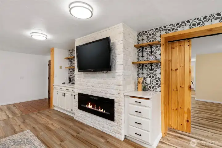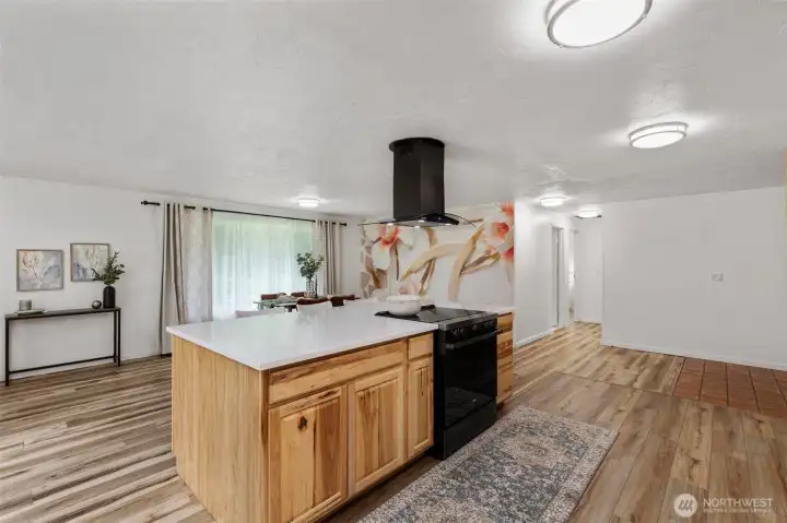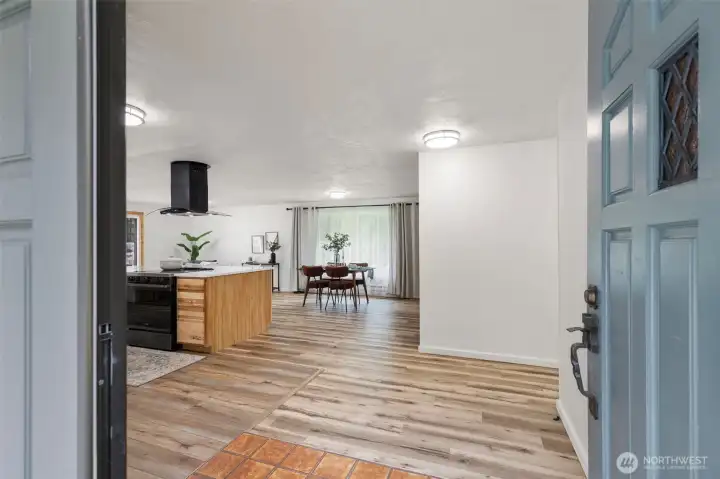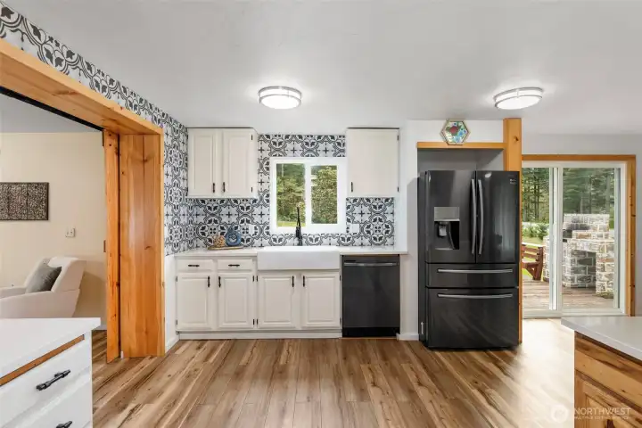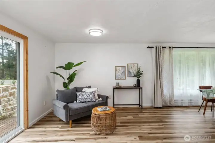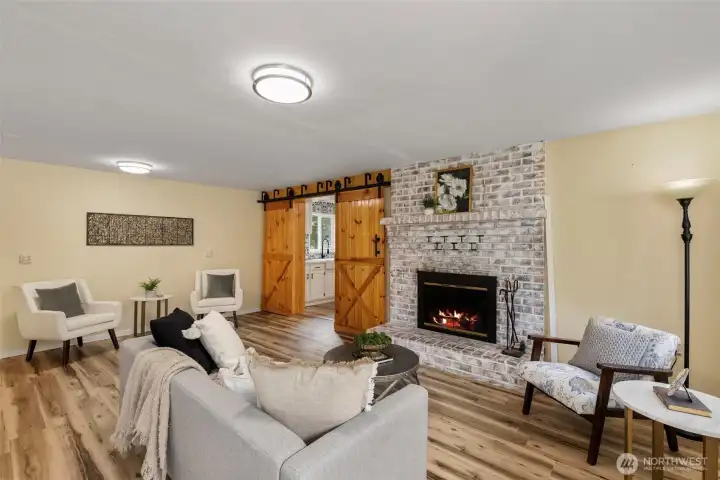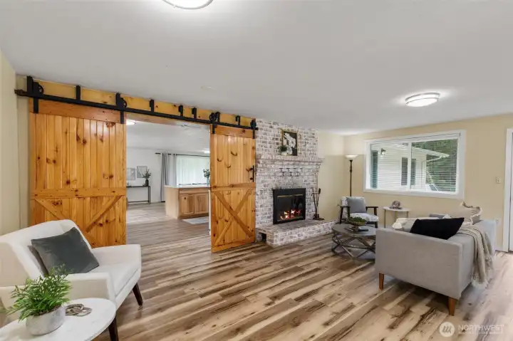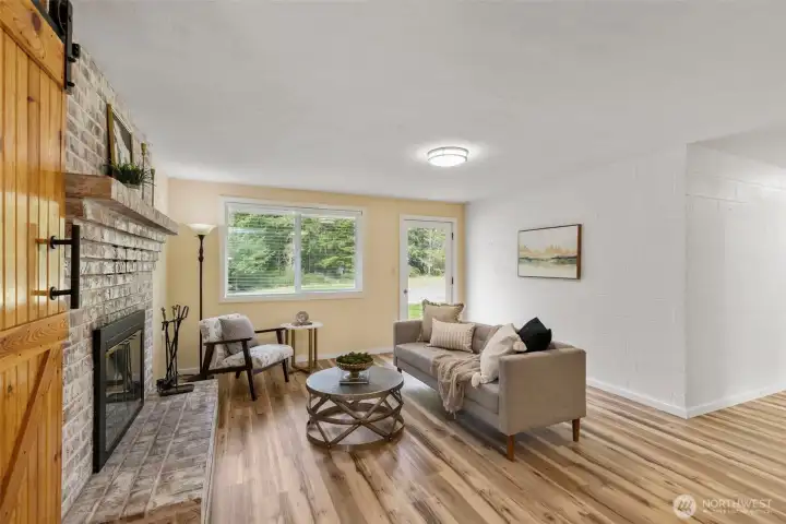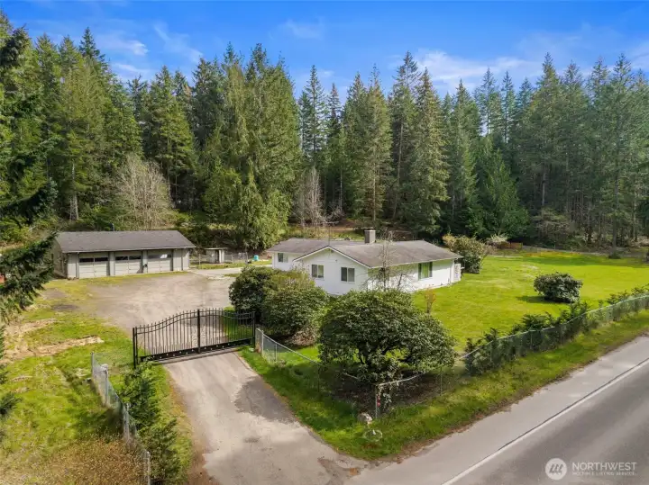 Experience ultimate privacy in this gated 4.48-acre property. The single level, 4-bedroom home features luxury vinyl plank flooring throughout. Open concept living with a huge modern kitchen, dining and living area. The updated kitchen features oak cabinets, quartz counters, farmhouse sink and gas fireplace. Cozy family room with a wood fireplace. Large bedrooms with 2 full bathrooms and utility room. Huge detached garage with shop and sink, perfect for projects and storage. The spacious lot has a dog run, chicken coops, garden shed and RV parking. Tons of possibilities for a potential mini-farm or gardener’s delight. Great location with easy highway access to shopping, dining and schools.
