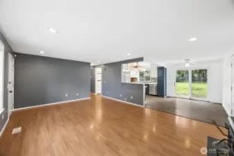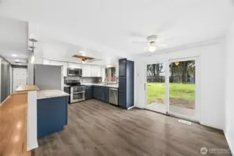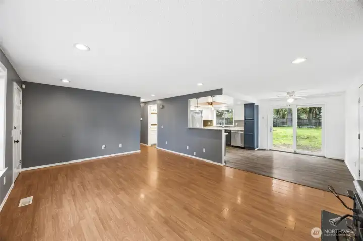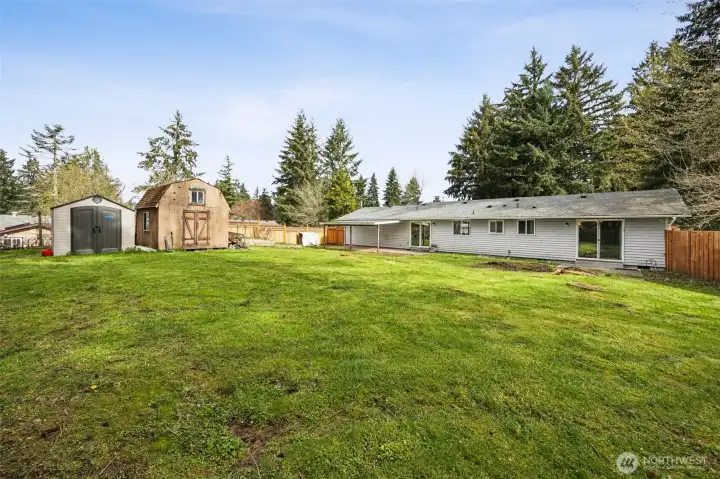 Welcome to this charming rambler located on a spacious .3-acre lot in The Meadows neighborhood. This home boasts laminate flooring throughout. The inviting living room features a cozy wood-burning fireplace and a large window that provides an abundance of natural light. The updated kitchen is equipped with stainless steel appliances, including a double oven, a stylish tile backsplash, and painted cabinets. The primary bedroom offers a closet with custom built-ins and a convenient 3/4 bathroom. Two additional guest rooms provide ample space for guests or a home office, and are complemented by a full guest bathroom. Enjoy the added convenience of a washer and dryer that are included with the home. The extra-large 2-car garage is a true standout, featuring shelves and a workbench for all your storage and hobby needs. Large, fully fenced backyard that includes a firepit, gazebo, shed, garden beds, and a covered patio area – perfect for year-round enjoyment. Additionally, you'll find RV parking, offering plenty of room for your recreational vehicles. With vinyl siding and forced air heating, this home is both low maintenance and efficient!