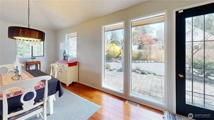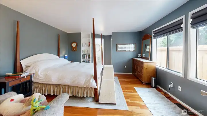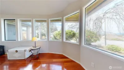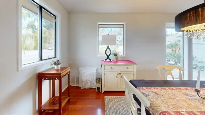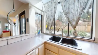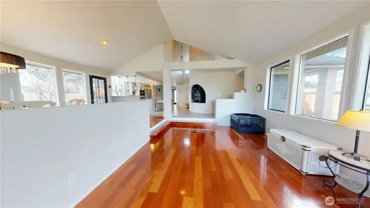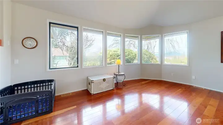 Beautiful home and landscaping, with spectacular views of the Skagit Valley and surrounding mountains, on a large corner lot in the Mount Vernon Hilltop neighborhood. Home features 3 bedrooms, 2 1/2 baths, open floor plan with engineered America Cherry hardwood floors in the living room, dining room and main level primary bedroom. Upper level has 2 bedrooms, full bath, office space and spacious bonus room. Sunroom/atrium with French door leads to the brick patio and large private fully fenced backyard with extra space for RV parking. 2 car garage with front and back entry, extra storage and is wired for 220 and 110. Close to schools, parks, shopping and hospital.
