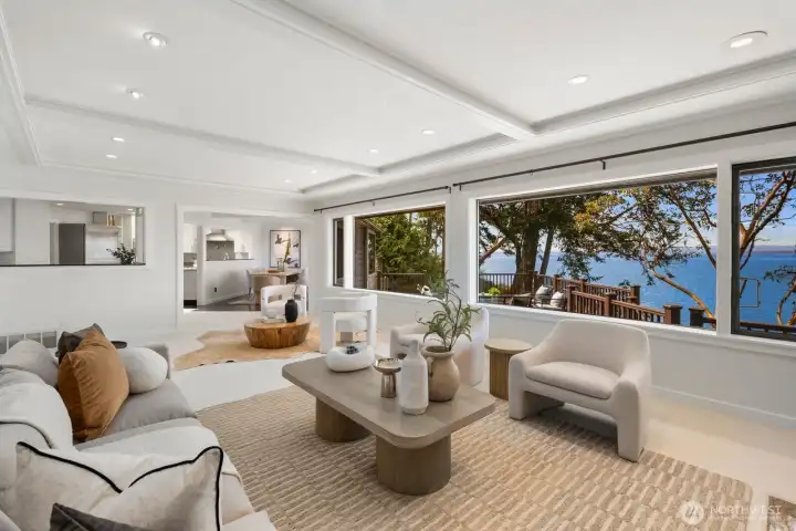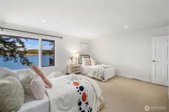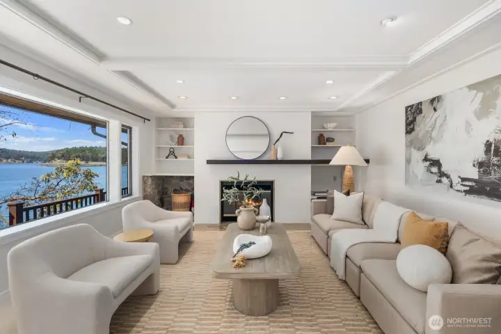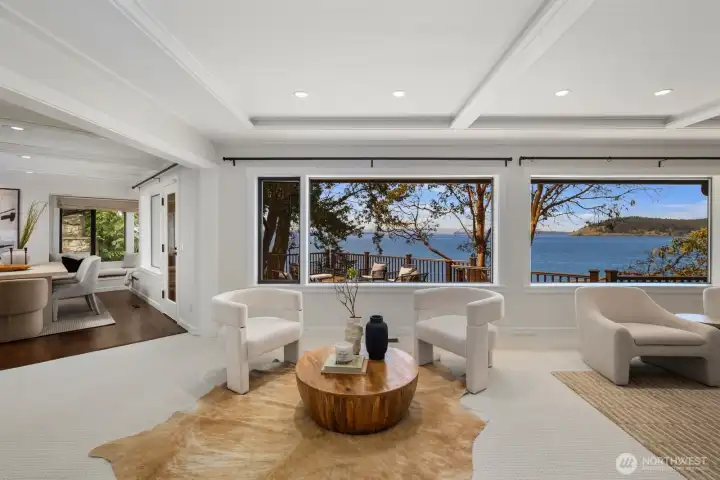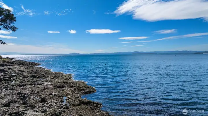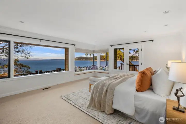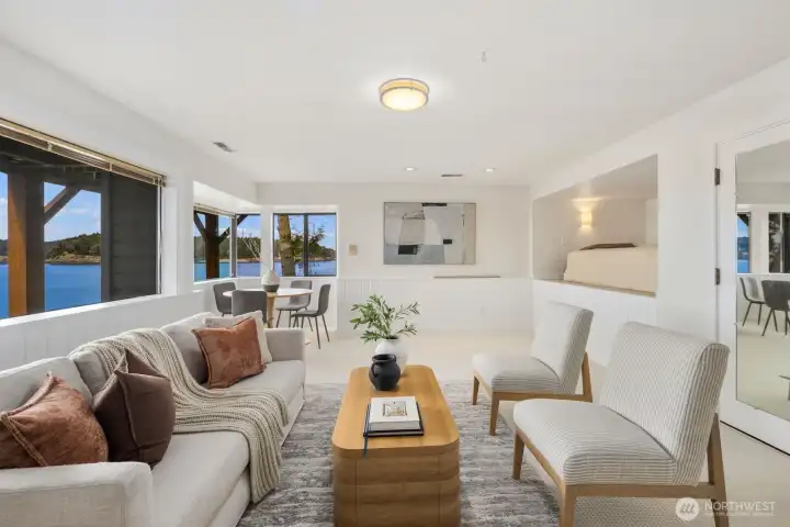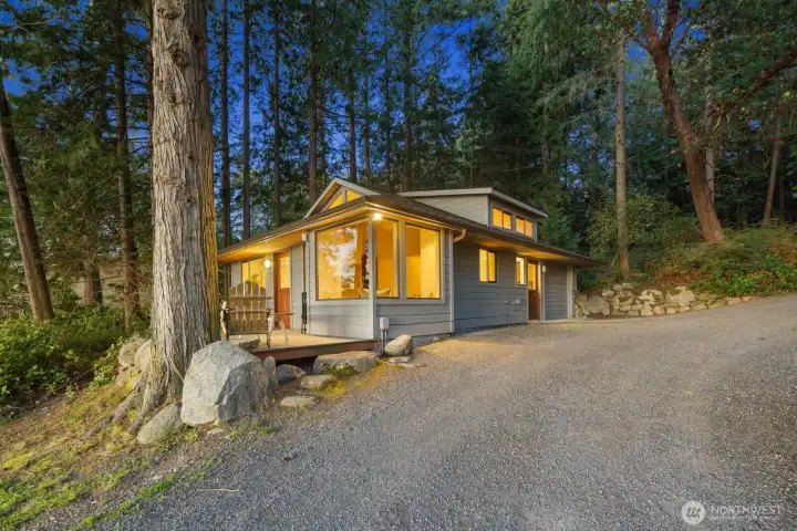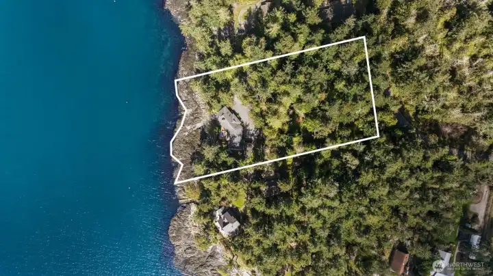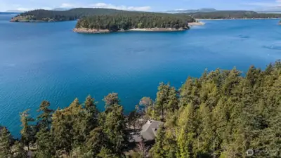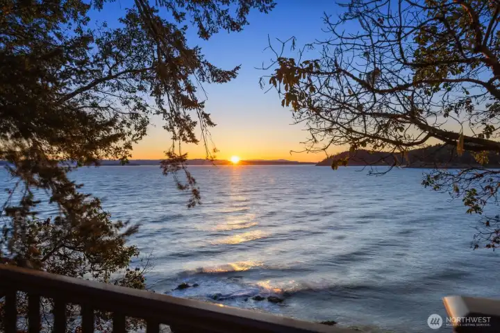 This is where the noise stops. Perched on the west side with over 180 degrees of open water views, this custom-built estate occupies one of the most sought-after positions in the archipelago. Sheltered by the lee of Henry Island, the orientation delivers dramatic sunsets and calm, unhurried water for your boat — a rare combination on the islands. The main residence has been meticulously maintained and recently transformed: new carpet, heat pump system, and a massive rebuilt wraparound deck, ready for years of enjoyment. Walls of windows pull the water into every room. A private staircase leads down to your tidelands, and 251 feet of deeded shoreline and 2.5 legal parcels convey with the sale. Your mooring buoy is already in the water. There’s even a hidden room in the basement — the kind of detail that makes a house a home. The guest house earns its keep with views that rival the main residence, fully self-contained and privately situated. A dedicated detached office and two garages round out the compound, giving you the infrastructure to actually live here full time. Orca sightings, tall ships at sunset, deeded waterfront and room to expand. All yours.