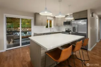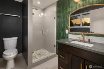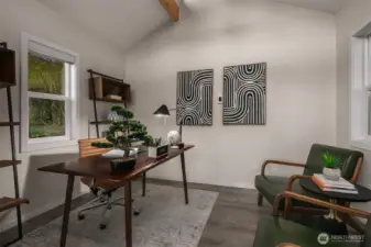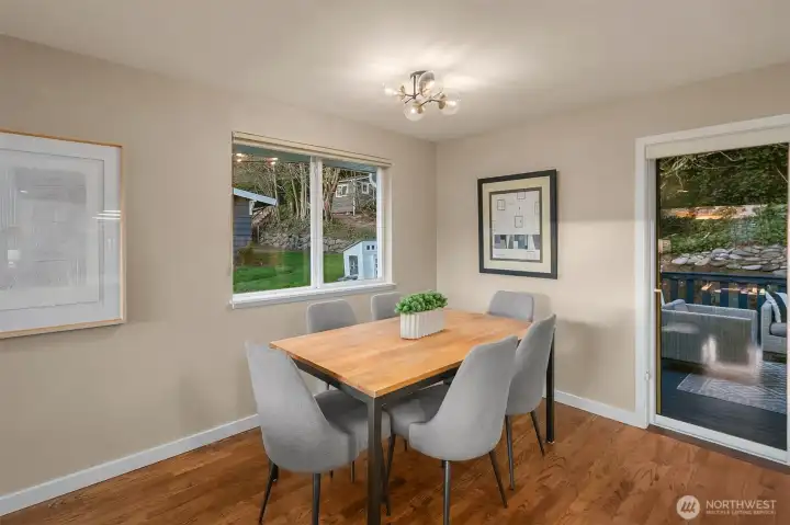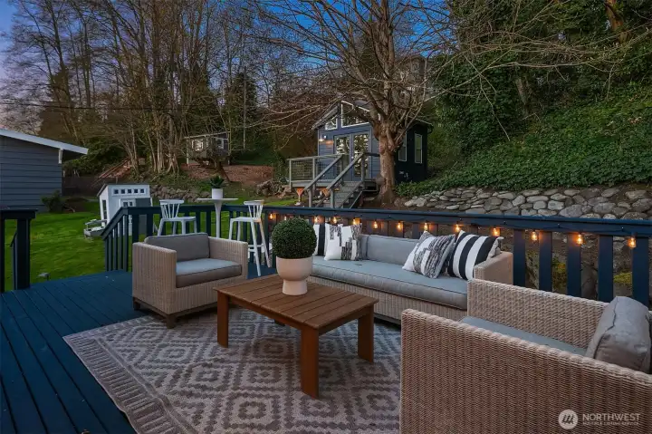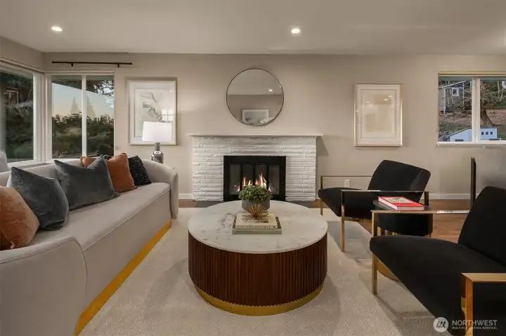 Modern updates highlight this spacious home that is near the best of West Seattle amenities. Perched above a quiet street, the property features well-maintained landscaping and adjacent forested greenbelt. With its bright interiors, the home has a welcoming energy that is enhanced by rich hardwood flooring and a fireplace anchoring the open-concept living area. Upgraded kitchen has stainless appliances, sleek quartz counters, and large island. Two bedrooms on main level, including primary with ensuite and walk-in closet. Incredible finished lower level boasts media room plus two additional bedrooms. Backyard oasis with expansive deck and a unique outbuilding for use as office or studio space. Layout is ideal for indoor-outdoor entertaining. Easy access to the fantastic restaurants, shops and cafes of Alaska Junction. Steps to elementary school and neighborhood park. Whole Foods, Trader Joe’s and LA Fitness are just minutes away.