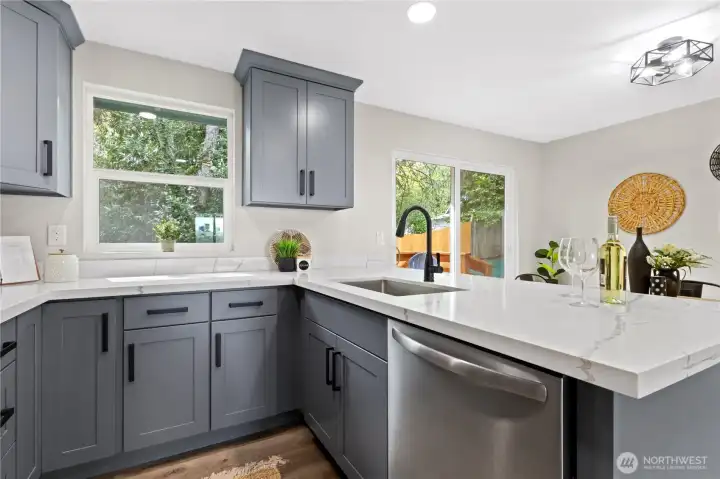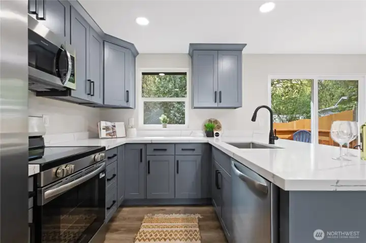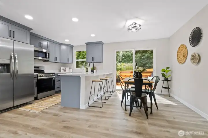 Fully renovated Central Kitsap rambler offering modern comfort in an established, centrally located neighborhood with easy access to hospitals, highways, ferries, the shipyard, and all of Silverdale’s amenities. No stone has been left unturned—this beautifully updated, move-in ready 3-bed, 2-bath home has been thoughtfully upgraded from top to bottom, including a brand-new roof, updated windows, modernized electrical, and new insulation in both the attic and crawlspace. Enjoy a sleek, modern kitchen featuring all-new stainless-steel appliances that stay, along with beautifully refreshed bathrooms showcasing modern tile floors and tiled showers. Luxury vinyl plank flooring flows through the main living areas, while brand-new carpet adds warmth to every bedroom. The functional single-level layout offers bright, inviting spaces perfect for everyday living and entertaining. Step outside to a brand-new deck overlooking a large, fully fenced backyard—ideal for pets, play, or gatherings. Freshly hydro-seeded front and back yards are ready to enjoy this summer. Complete with a spacious two-car garage, this home perfectly blends modern updates, comfort, and convenience. Come see it today!