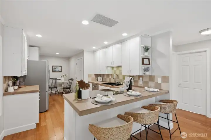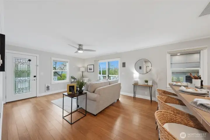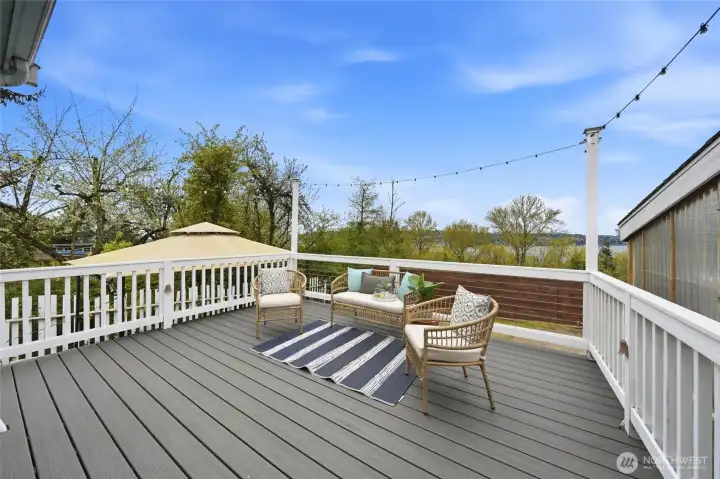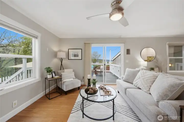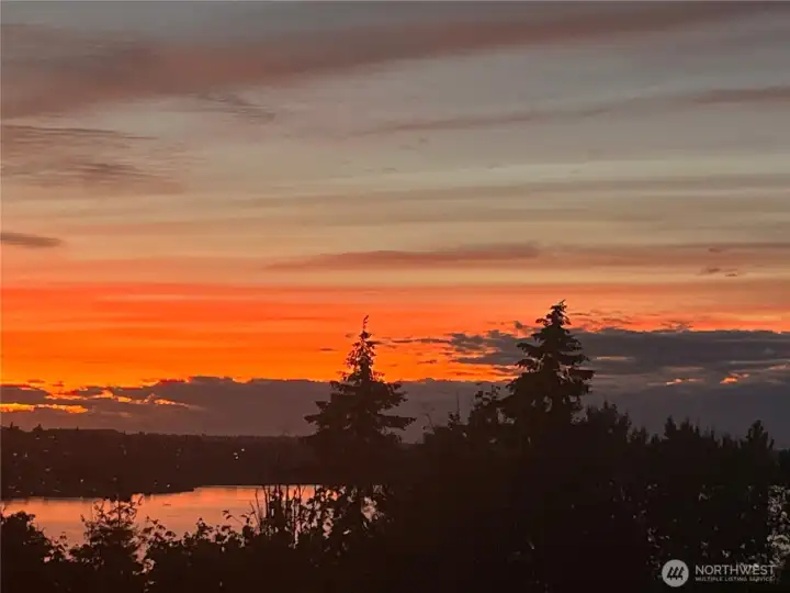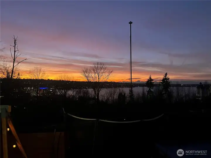 Perched in sought-after Upper Kennydale, this charming 2-bedroom, 2-bath single-family home captures sweeping views of Lake Washington and unforgettable sunset skies. Thoughtfully designed to maximize every inch, the home lives larger than expected with a bright, open feel and seamless flow throughout.Step out onto the brand new deck and take in stunning water views—the perfect spot for morning coffee or evening relaxation. Whether you're enjoying a quiet evening watching the sun dip below the horizon or entertaining guests in an intimate, view-filled setting, this home offers a rare blend of comfort, efficiency, and scenery. Ideally located near parks and commuter routes, it’s the perfect retreat for those seeking low-maintenance living without compromising on lifestyle.