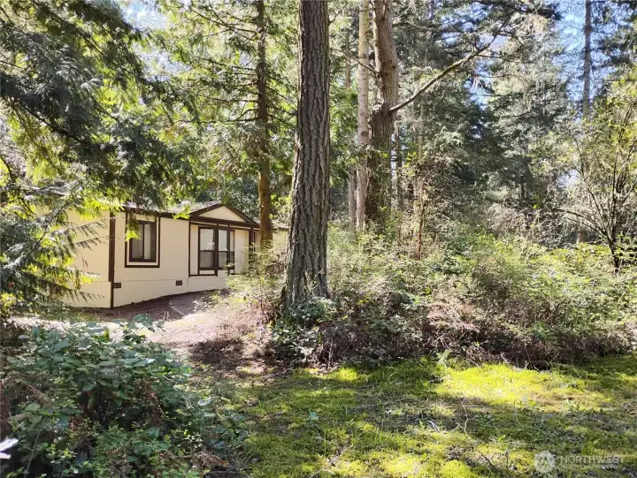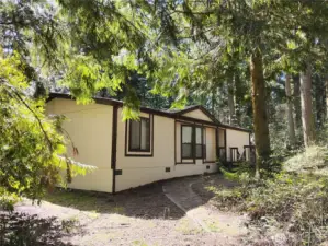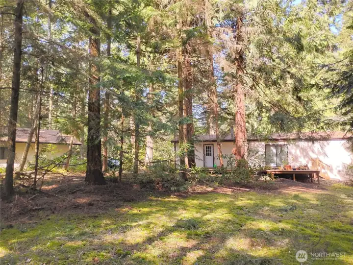 On the outskirts of Port Townsend, well kept rambler on nearly 6 acres of dry/mostly level forested acreage. Drive 1.11 miles to the popular Cape George trailhead which connects to pedestrian trail leading to the waterfront and marina! Flat, private driveway leads past the house to the detached 2 car garage which is insulated, drywalled, with a separate electric panel + a south facing, large bonus room, originally planned for a MIL apartment as it is plumbed for 3rd bathroom, has a large window & separate entrance leading from paved path along the outbuilding-use as a workhop! The location is perfect for you privacy or for an investor whom wants to create lodging opportunity for visiting recreation enthusiast vacationing the beautiful pacific northwest landscape of trees, beach front & the arsty downtown that is 10 minutes drive away!. The house has a mudd room with the washer, dryer, utility sink and storage cabinets. Easy to add AC to the electric, forced air furnace (in the laundry room plus there is a wood burning stove offering 2 types of heating options! The kitchen is open to the great room which has vaulted ceilings and adjacent dining room. The primary bedroom has a wall of closets and a private full bathroom. This place is so clean and maintained, we are proudly selling it in as-is condition. The back deck has sun streaming onto it from the south and a view of your private forest . This 1 owner home has public water connected and a well- easy to go off grid!