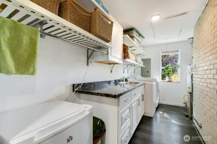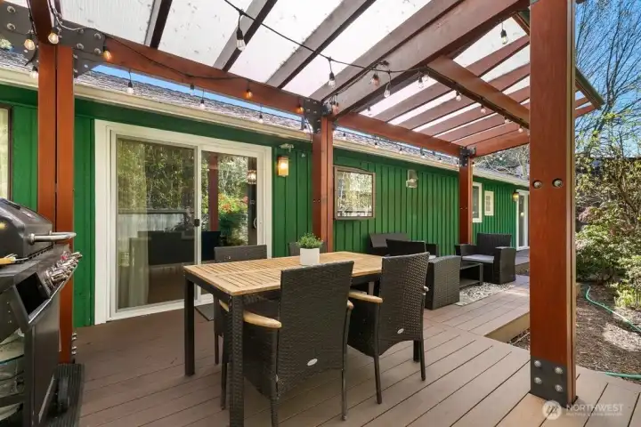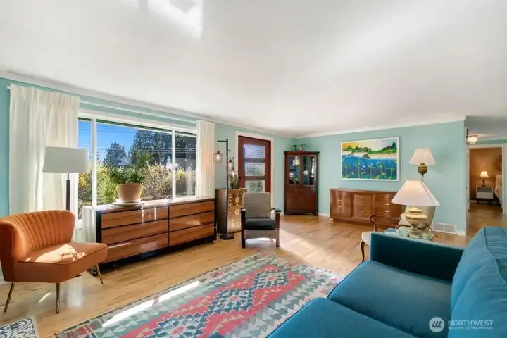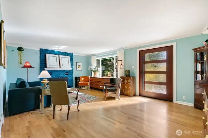 Step through the custom pivot door into this light-filled Lake Forest Park home, thoughtfully designed for effortless single-level living. Warm hardwood floors run throughout, creating a seamless flow from the inviting living area into the beautifully updated kitchen—ideal for both everyday living and entertaining. A dedicated dining room offers the perfect setting for gatherings, while the nearby covered deck extends your living space outdoors for year-round Pacific Northwest enjoyment. The versatile layout features three well-appointed bedrooms sharing a spacious bath, along with an expansive second living area that easily serves as a private retreat, media room, or home office. An organized utility room provides convenient space for laundry and extra storage. Enjoy peace of mind with major updates already completed, including a newer roof, heat pump, and electrical panel, plus a brand-new driveway and refreshed front garden. Deeded LFP Civic Club membership adds even more value to this exceptional property.