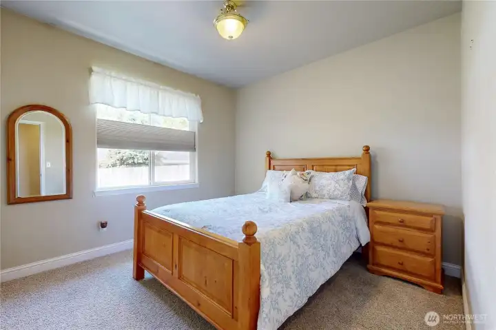This well-maintained, single-level residence features three bedrooms and two bathrooms and is situated on a quiet cul-de-sac. The interior includes a spacious living area with expansive windows, a bonus room adjacent to the kitchen equipped with a gas fireplace, and a well-designed kitchen featuring a pantry. The primary bedroom features trey ceilings and an en suite five-piece bathroom, complete with jetted tub and walk in shower. Exterior highlights include mature landscaping, a covered patio ideal for entertaining, and a large area for extra parking. Upgrades to the property consist of a new HVAC system, hot water heater, and fresh exterior paint. This home offers numerous amenities and is truly move in ready.