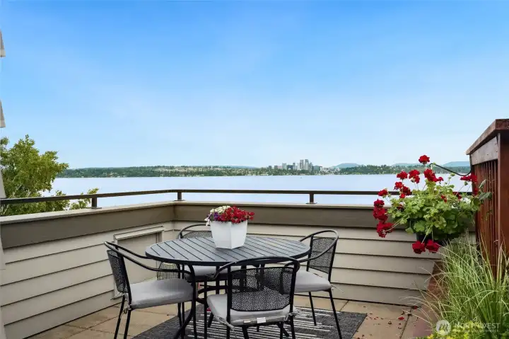 Ready for sunshine and summer fun! Imagine evenings dining lakeside, relaxing on your rooftop deck, and storing your SUP with ease – all you desire for your waterfront lifestyle. All common rooms have city and lake vistas, and the rare rooftop deck offers 180° views from majestic Mt. Baker to iconic Mt. Rainier, with the lake, gorgeous Bellevue Skyline, and the Cascade Mountain range in between! Inside, warm mahogany and cherry accents enhance the quality ambiance. The well-designed floor plan makes this townhome live large, like a stand-alone home. Without fussy elevators and common hallways, this exceptional townhome is a rarity, combining everything you love – location, luxury, and an easy lifestyle. Super private with outlooks to nature and views. Don't miss the Vinotemp dual-zone 300-bottle wine cooler/refrigerator in the attached garage with uncommonly easy parking and storage. An additional common garage offers parking for a 2nd car + gear. Ample off-street parking. Just 3 blocks to vibrant Leschi, with its charming market, fantastic restaurants, Starbucks, parks. Check out HOD which are comparatively low. They cover many items including common area maintenance, landscaping, earthquake insurance, quarterly ext window washing, gutter cleaning, bug spraying, exterior light bulb replacement and some utilities.