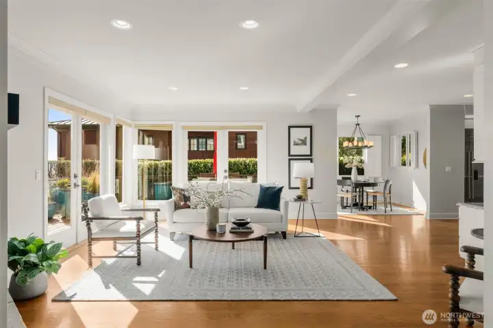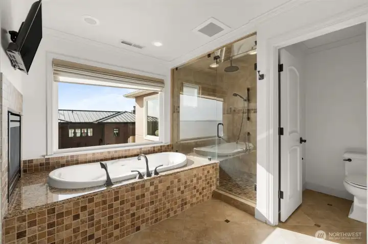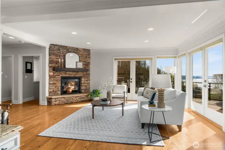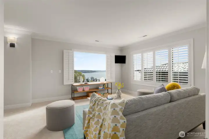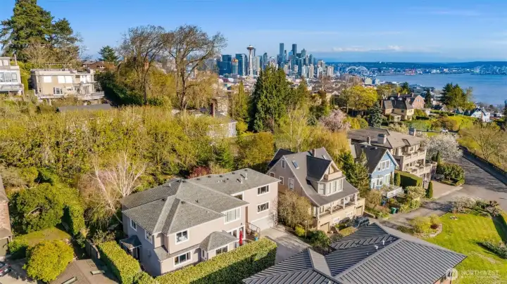 Perched on the coveted west side of Queen Anne, this grand residence offers expansive protected views of Puget Sound, the Olympic Mountains, and breathtaking sunsets — a backdrop that shifts with the seasons and never loses its magic. Set on a sprawling 10,800 sq ft lot, the scale and setting are simply unmatched. The main level is thoughtfully designed with generous, well-proportioned spaces that balance everyday comfort with effortless entertaining. Anchored by the kitchen, the great room with a casual eating area serves as the natural gathering space of the home, while a separate media room offers the perfect retreat for movie nights or game days, and a formal dining room is ready for hosting. The main floor is completed by a dedicated office with fireplace, powder room, and laundry—each space intentionally designed and scaled for how you desire to live today. Upstairs you’ll find extraordinary views from the luxurious primary suite with fireplace, five-piece ensuite bath including a soaking tub, and walk-in closet. Three additional bedrooms plus a bonus room with more big views that works beautifully as office, gym, playroom, or 5th bedroom, you name it. The lower level adds flexibility with a private guest suite and attached 3/4 bathroom with separate entrance, as well as abundant storage. A two-car garage and central A/C ensure year-round comfort & convenience, rounding out a home that offers both space and livability in one of Queen Anne’s most sought-after settings.