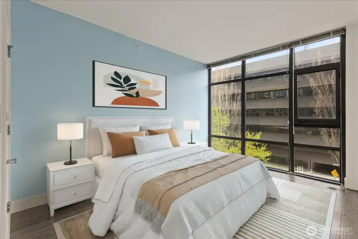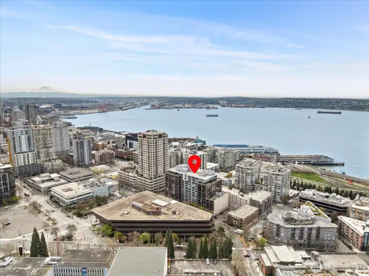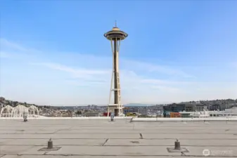 Amazing place to live- secure building with fantastic concierge services, walking distance to some of Seattle's most iconic sites and restaurants galore. Listed as a 1 bedroom, but it has a truly unique Flex-bonus room (with closet) that you can use as an office, art studio or a non-conforming bedroom? Larger than the other 1 bedroom units in the building this unit offers much, much more. Rooftop deck that is so close to the Space Needle that you feel like you can almost touch it! See the panoramic views of the Olympic Mountains, downtown Seattle skyline and the Puget Sound. Workout room, business offices, recreation room and doggie area! Secure parking space. If you want a taste of what the best Seattle has to offer, this is the place for you! See it today!