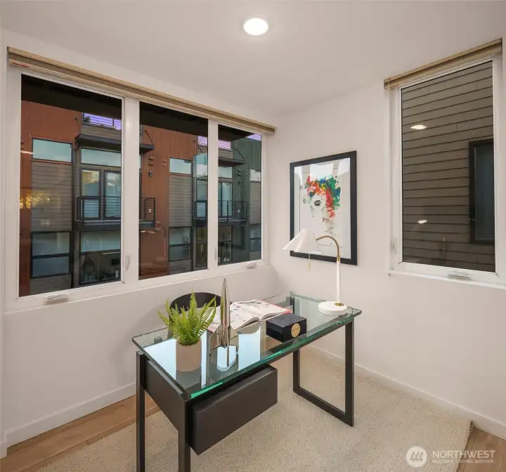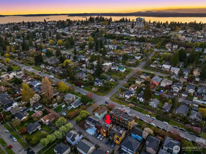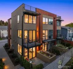 Refined design meets effortless urban living in this modern and spacious three-bedroom townhome with a spectacular rooftop deck. Those desiring seamless indoor/outdoor living will appreciate the additional entertainment patio and two Juliet balconies. The open main level features a fireplace, expansive windows and abundant natural light. Designer kitchen outfitted with premier appliances and quartz counters. Pantry space and powder room add convenience. Second level offers two guest bedrooms, full bath, and a bonus space that can utilized as den or home office. The primary suite occupies the entire third level and serves as a true retreat with large walk-in closet plus a stunning bathroom complete with quartz counters and dual sinks. There is additional flex space on this level. Escape to the large deck for morning coffee or watching sunsets in the evening. The territorial views are perfect at any time of day. Off-street parking and no HOA fees. Close to Discovery Park and great Magnolia Village restaurants, cafes and shopping. Easy commuter access to Interbay, South Lake Union and downtown.