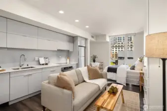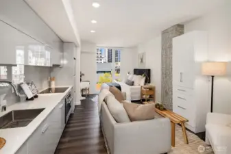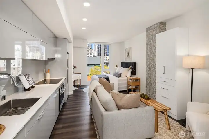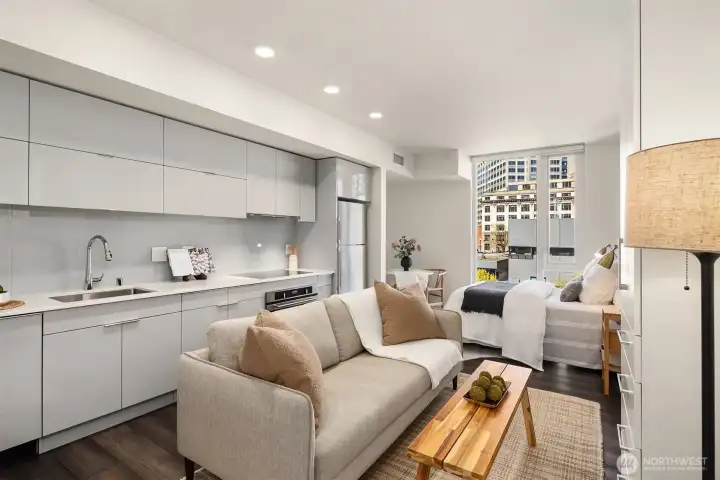 Experience refined urban living at KODA Condominiums, a striking 2021-built 17-story residence ideally positioned at the crossroads of Downtown Seattle, Chinatown–International District (Japantown), and historic Pioneer Square—one of the city’s most culturally rich and rapidly evolving neighborhoods. Just moments away, Seattle’s newly revitalized waterfront along Elliott Bay has transformed into a world-class destination with 20+ acres of parks, scenic promenades, lush landscaping, bike paths, and vibrant public spaces reconnecting the city to the water. Enjoy dining, recreation, and seamless access to Pike Place Market and the Seattle Aquarium via the iconic Overlook Walk. This thoughtfully designed studio with full bath offers ADA-compliant features for ease and long-term livability, paired with modern finishes. Enjoy central A/C, engineered wood flooring, Lutron automatic solar shades, a sleek kitchen with Blomberg appliances and Fulgor range, side-by-side Blomberg W/D. KODA amenities include a rooftop retreat with BBQs and sweeping west-facing views of the Seattle skyline, Elliott Bay, the Cascade Mountains, and Smith Tower sunsets, plus a Zen Garden, fitness and yoga studio, media room, Club KODA lounge with Karoke, 24/7 concierge, and more. Walk 98/Transit Score 100—steps to light rail, King Street Station, Amtrak, Sounder, and direct Sea-Tac access for easy, car-optional living. No rental cap, no special assessments—ideal as a primary home, pied-à-terre or investment.