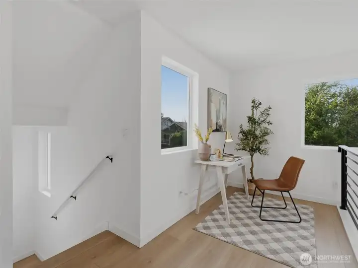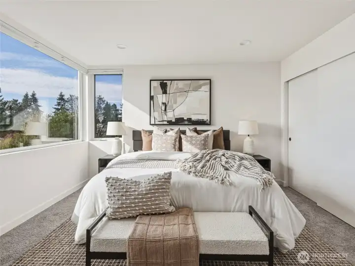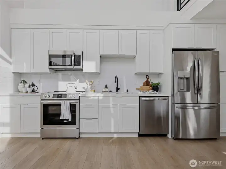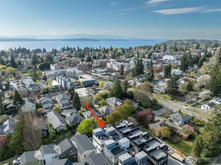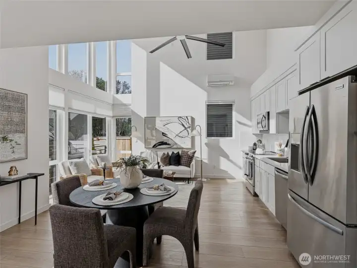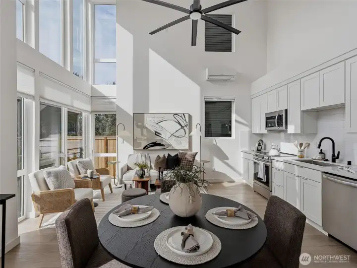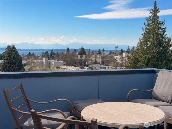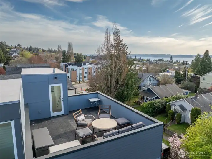Experience elevated West Seattle living in this stunning end-unit townhome, where sweeping Puget Sound and mountain views set the tone for everyday luxury. Step inside to a fully fenced yard, providing a welcoming entry and private outdoor space, along with convenient exterior storage. Bathed in natural western light, this thoughtfully designed home features an open-concept main level with soaring ceilings. The chef’s kitchen is beautifully appointed with custom cabinetry, quartz countertops, and stainless steel appliances, seamlessly connecting to the living area. A versatile lofted foyer space above offers the ideal setting for a home office or dining area. Upstairs, two spacious bedrooms and a dedicated laundry area occupy the third floor, while the top-level primary suite offers a true retreat—complete with expansive views, generous proportions (comfortably fitting a CA King), and exceptional privacy. The rooftop deck creates an unforgettable backdrop for entertaining or unwinding, with breathtaking panoramic views of the Sound and mountains. Located just moments from Thriftway, Lincoln Park, the Vashon ferry terminal, and an array of local shops, restaurants, bars, and fitness options, this home offers the perfect blend of convenience, comfort, and Northwest beauty. Additional highlights include air conditioning, hardwood floors, fresh interior paint, No HOA, and a pre-inspected, move-in ready status for peace of mind.