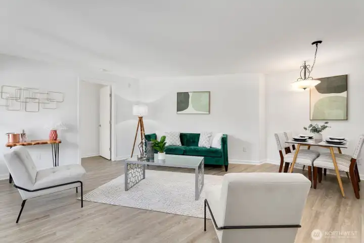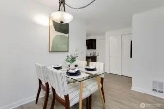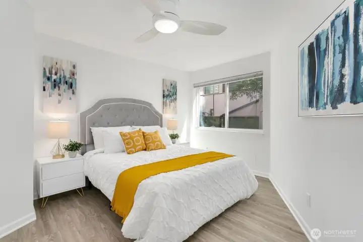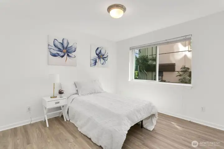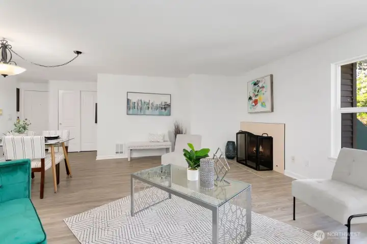This thoughtfully updated two-bedroom condo maximizes every square foot with an intelligent layout and quality finishes. LVP floors flow seamlessly throughout the main living areas, while the open dining area centers around a wood-burning fireplace that creates warmth and ambiance. The modern kitchen features granite countertops, stainless steel appliances, and clean lines perfect for everyday living or entertaining. A corner position delivers enhanced natural light and privacy—rare advantages in condo living. In-unit washer and dryer add convenience, while secured parking eliminates urban parking challenges. The building's boutique scale fosters true community without the anonymity of larger complexes. Magnolia's village sits steps away with local cafes and shops at your fingertips. The Elliott Bay Trail runs directly outside, offering seamless bike access to downtown and South Lake Union. RapidRide stops two blocks away connect you to Seattle's CBD, while Discovery Park's 534 acres provide an unmatched urban escape.