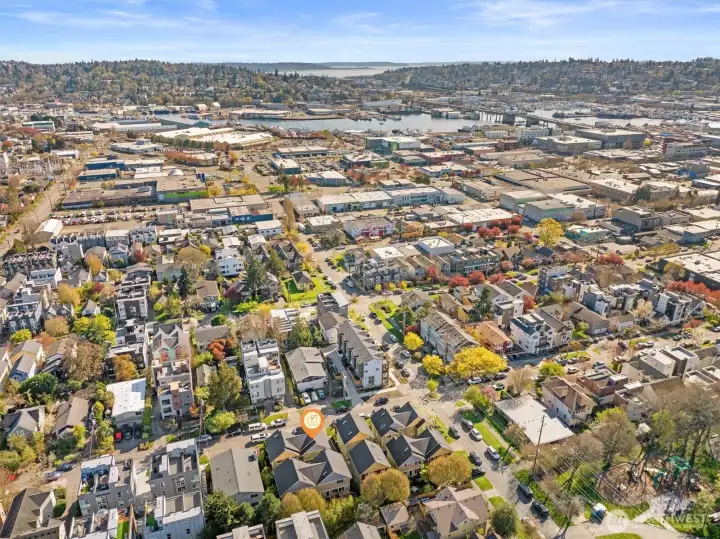 Tucked into the vibrant heart of Ballard’s coveted Brewery District, this beautifully appointed townhome offers the perfect blend of modern comfort, thoughtful design, & unbeatable urban lifestyle. A private, fenced courtyard creates a warm & welcoming entry—ideal for morning coffee, & gardening. The main living level is a true showstopper, featuring an open-concept great room with striking exposed beam ceilings, a cozy gas fireplace, & seamless flow between the kitchen, dining, & living spaces. The kitchen is both stylish & functional, complete with stainless steel appliances, including a brand new stove. A convenient powder room completes this level. Upstairs, vaulted ceilings elevate the space & creates an airy, light-filled retreat. The serene primary bedroom features an en suite bath, while a second bedroom & full hall bath provide flexibility for guests, work-from-home, or additional living needs. The lower level offers a third bedroom & full bath—ideal for visitors, office space, or a home gym. Recent updates include fresh interior paint, newer exterior paint, a heat pump mini-split with A/C for year-round comfort, & a tankless water heater for energy-efficient living. Just two blocks from Gilman Playground—with pickleball courts & green space. Surrounded by some of Seattle’s best breweries, cideries, restaurants, and shops, this location truly has it all. With a Walk Score of 92 and Bike Score of 94, enjoying everything Ballard has to offer is effortless.