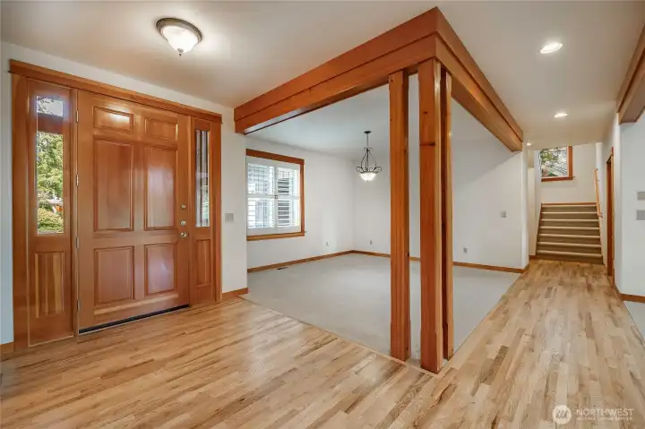 Classic Coastal Craftsman in Royal Troon at Semiahmoo, ideally positioned along the coveted 6th fairway. Premier fairway setting offers a rare blend of privacy & sweeping golf course vistas, all tucked within a quiet cul-de-sac. Impeccably maintained & truly move-in ready, the home showcases recent upgrades including new interior paint, new flooring, & a new presidential composition roof. Authentic Craftsman architecture is evident throughout, with exposed timber beams, select-finish oak floors, & refined coastal detailing. Covered entry welcomes you inside, where French doors from the great room open to an elevated patio. Natural light pours in through skylights, enhancing the warm and inviting ambiance. The main level features two fireplaces, including a distinctive herringbone design in the den, complemented by cultured stone, plantation shutters, & rich architectural finishes. The chef’s kitchen is appointed with Viking appliances & custom fir, furniture-grade cabinetry. Thoughtfully designed for both comfort & function, the home offers a spacious yet refined layout. A three-car garage, level driveway, & seamless entry provide everyday ease. Upstairs, a generous bonus room with built-in desk & shelving offers flexible living or work space, enhanced by excellent natural light. Two additional bedrooms & two baths provide ideal accommodations for guests. A rare opportunity to own a timeless Craftsman retreat in one of Semiahmoo’s most desirable golf course locations.