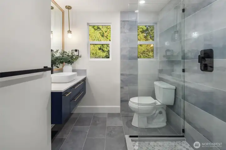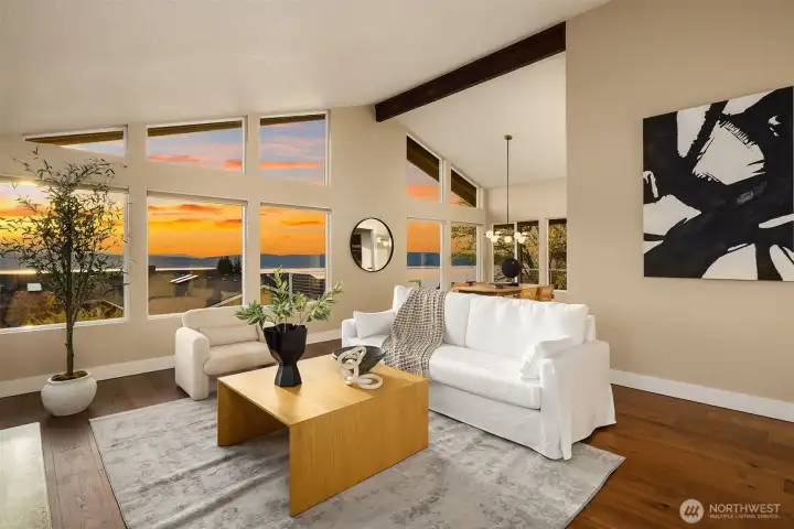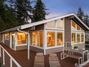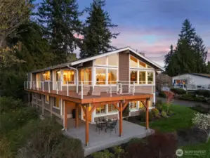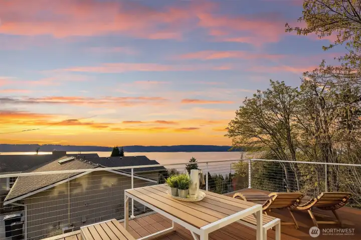 Rare remodeled 5-bedroom, 3-bath home in Olympus Terrace, perched above the Puget Sound with sweeping views of Whidbey Island and the snow-capped Olympic Mountains. Every inch of this home has been updated — arrive and settle in without a project in sight. The 3,000 sq ft layout spans a bright main level and fully finished 1,363 sq ft basement, offering flexible space for every stage of life: home office, media room, guest suite, or all three. Outdoor living is where this property truly shines. An 831 sq ft deck captures the views while a large patio extends your entertaining space at ground level. The yard features a gated garden area with mature fruit trees, manicured grounds, and a dedicated dog run — over half an acre designed for people and pets alike. A separate lower access road reveals even more potential: a natural ADU site already supported by dual 200-amp electrical service, ready for rental income, a guest house, or multigenerational living. Attached two-car garage, forced air heat, and a generous lot with open topography round out a property that balances privacy with convenience. Minutes from Mukilteo's waterfront, lighthouse, ferry terminal, and Paine Field, with access to the highly regarded Mukilteo School District. A fully remodeled view home with ADU potential in one of Mukilteo's most sought-after neighborhoods — this one covers all the bases.