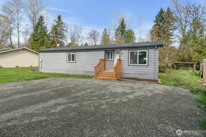 Step into this beautifully remodeled double-wide home on nearly one-third of an acre in the charming town of South Prairie. Nearly every inch has been refreshed, featuring brand-new kitchen cabinets, countertops, and appliances, along with new laminate hardwood flooring throughout. Both bathrooms shine with new vanities and tubs, and the entire home—inside and out—has been freshly painted for a crisp, move-in-ready feel. A new furnace and a 2 year old roof complete all of the checklist items on this one. Nestled on a spacious, picturesque lot, this property offers a peaceful backyard setting with a serene view of the creek. A rare combination of modern updates and natural beauty, this home delivers comfort, style, and room to breathe.