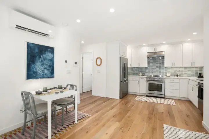 Move-in Ready! Better than New! This Contemporary Farmhouse-style 2-story home, built in 2022, lives like a private retreat. Professionally landscaped, with its own fully fenced yard, outfitted with smart-controlled lighting and irrigation, the outdoor spaces create an oasis that feels both serene and beautifully considered. Inside, light-filled rooms are elevated by solid white oak floors, high ceilings, an elegant fireplace, and a culinary kitchen with stainless steel appliances, including an INDUCTION Range. Open living and dining spaces feel both inviting and refined, with a convenient 1/2 bath on the main level. Upstairs are 2 bedrooms, each with its own full bathroom, including one with a walk-in closet, plus an additional storage closet and stacked washer/dryer in a proper laundry room for everyday ease. Thoughtful post-builder upgrades make this home truly better than new, including window treatments, many top-down/bottom-up, Lutron smart tech, and custom storage. Enjoy efficient heating and A/C with ductless mini-splits, plus 2 off-street parking spaces (accessed from the alley), one EV prewired. Tucked into one of West Seattle’s friendliest neighborhoods near the Fauntleroy Ferry, Lincoln Park, Endolyne, and beloved local shops and eateries. Convenient to Seatac Airport, yet blissfully quiet. If you’ve seen this home before, return to experience the NEW FENCING INSTALLED that further enhances the privacy, beauty, and distinct sense of arrival.
