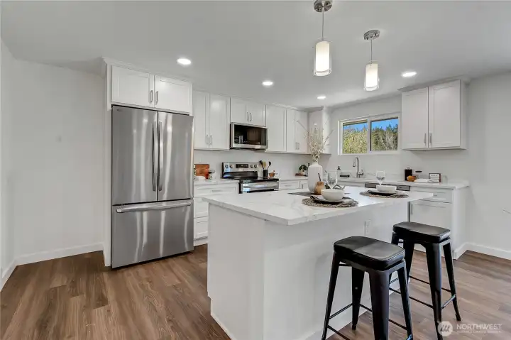 Wonderful Turn-key home with a large shop! This completely remodeled 2 bed 1.75 bath with an optional 3rd bedroom offers open concept living with well appointed finishes. The kitchen with eating space, laundry room/pantry, living room, primary bedroom w/bath, and additional bedroom are on the main floor with a den/bedroom, office and bonus living room on the lower level. New septic, pex plumbing, new heat pump, new roof and the list continues! Spacious basement storage room with indoor/outdoor access. Large 30x30 shop with power lift doors! Plenty of space for RV parking. All well positioned on a 3/4 ac. Quick drive to Port Orchards shopping and dining and schools. 4 minutes to hwy 16 and 15 minutes to Bremerton.