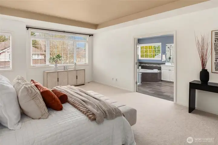 Welcome to coveted Montrachet neighborhood! This beautifully crafted Murray Franklyn home showcases timeless quality and an ideal floor plan designed for today’s lifestyle. Offering 4 spacious bedrooms, a large bonus room, and a versatile main-floor office—perfect as a 5th bedroom—alongside a nearby ¾ bath, this layout comfortably accommodates extended stays, or multigenerational living. Enjoy thoughtful upgrades, including newly remodeled bathrooms, fresh interior paint, new carpeting, and brand-new appliances. The home sits on a flat, level lot with a fully fenced, expansive backyard. Tucked away on a quiet, private cul-de-sac with low traffic, this location offers both tranquility and convenience. You’re just moments from the Plateau Club, golf course, scenic trails, and Soaring Eagle Regional Park. Inside, the open and airy design features vaulted ceilings, central A/C, and a seamless flow between formal and casual living spaces. Upstairs, retreat to the generous primary suite with a luxurious 5-piece bath and walk-in closet, along with an oversized bonus room. All this in a walkable neighborhood with an easy commute to Microsoft and downtown Redmond, plus access to the highly acclaimed Lake Washington School District.