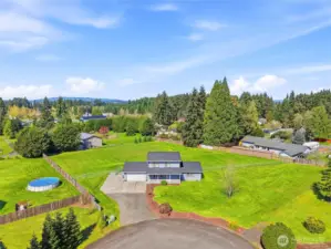 Rural neighborhood home sprawled out over an acre! Tucked at the end of a quiet cul-de-sac in a peaceful country neighborhood, this well-maintained home has it all, offering privacy, space, and convenience all in one. Inside, you’ll find an inviting layout with functional living spaces for everyday living and entertaining. The kitchen offers simplicity with flow into a dining area and open to the living room that creates a warm, connected feel. Two main level guest rooms are conveniently located near a full bathroom and laundry room. Upstairs is the definition of versatility. Current use is the primary suite with an oversized walk in closet and attached bathroom. Use your imagination for other uses including multiple sleeping arrangements, nursery, bonus room, additional living room, home office, etc. This space is flexible and is a must see before ruling this home out. Outside, you have over an acre of completely usable space. Front yard is beautifully manicured to perfection with curb appeal landscaping. Massive backyard is easy to maintain and has room for a future shop, gardening and is turn key for pets with it being fully fenced. Back patio is ready for grilling season! Roof was replaced last year and HVAC system blows ice cold air, ready for sunny weather. RV parking next to home is just another bonus feature this home offers! Don’t miss this opportunity to own the American dream just up the hill from town centered between multiple great school districts.