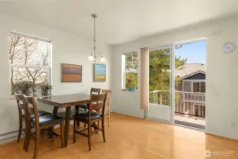 Location, Location, Location with Amazing VALUE! Move-in-ready, this stunning end-unit townhome offers high ceilings, beautiful flooring, and a wide-open floor plan. The charming kitchen opens to a spacious dining and living area with a cozy fireplace and sliders leading to a private deck & backyard with garden space. Upstairs, find 3 spacious bedrooms boasting sweeping Cascade views. The lower level includes a versatile 4th non-conforming bedroom—perfect for a home office, gym, or guest room. Includes an oversized garage. Enjoy a welcoming community with sidewalks, tree-lined streets, and easy access to the Chief Sealth Trail for weekend bike rides. Unbeatable walkability to local parks, schools, library, shopping, dining, and the light rail. No special assessments. A must-see!