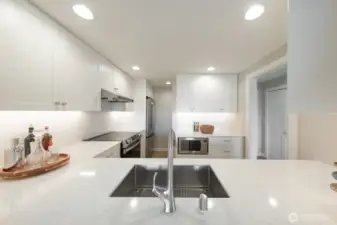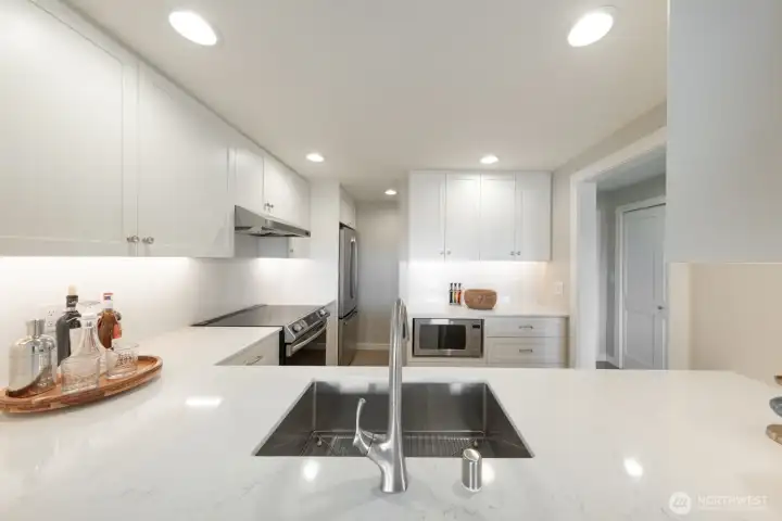Top-floor waterfront living with unmatched views! Soak in sweeping vistas of Lake Washington and the Cascade Mountains from this fully renovated top-floor unit in the coveted Lake House Condos. The beautifully updated kitchen features new quartz slab countertops and backsplash, new cabinets, and a spacious pantry for added storage. Enjoy hardwood floors throughout, dining room w/access to a covered deck. The primary suite offers a walk-in closet & elegant en-suite bath, while a versatile den can easily serve as a 2nd bdrm or office. In-unit laundry, secure garage parking, and a lakefront pool & day-use dock. Ideally located next to a beach park and just steps from Madison Park’s shops & restaurants - easy access to SR-520! Don't miss this!