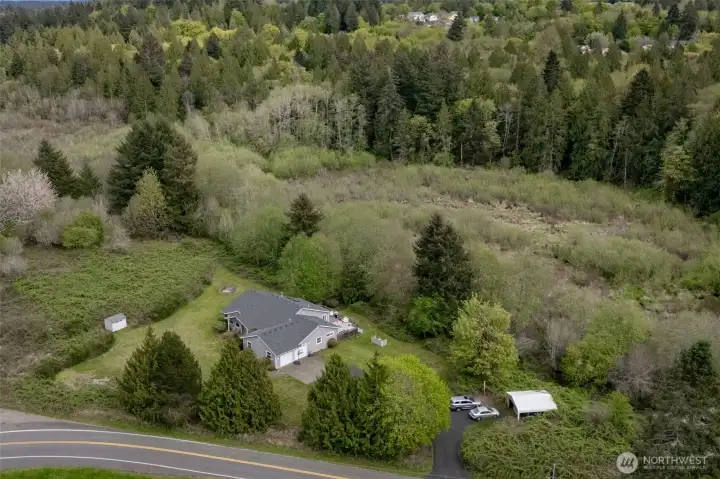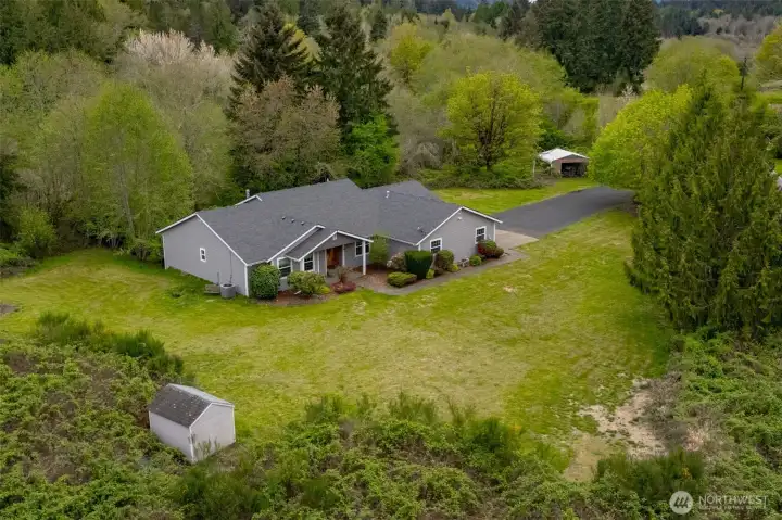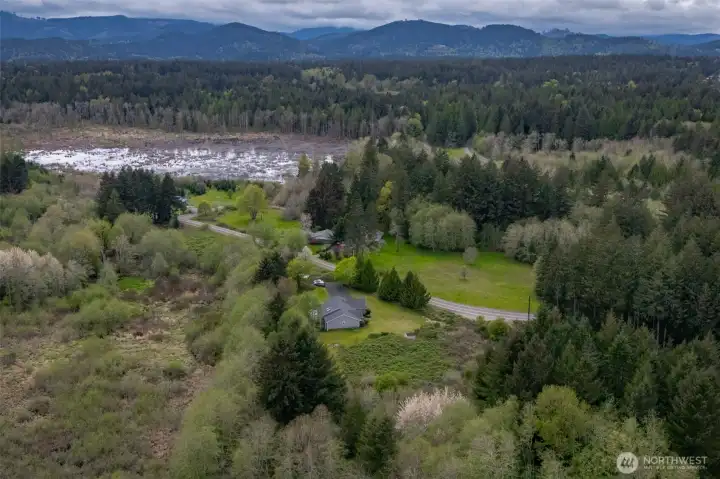 This one owner home on nearly 5 acres in a prime location minutes away from West Olympia. This light-filled home offers the perfect blend of space, comfort, and natural beauty. Surrounded by serene wetlands, the setting is peaceful and picturesque, creating your own private retreat while still being conveniently close to town. The home features 4 bedrooms plus a den, a formal dining room, and a thoughtfully designed layout ideal for both everyday living and entertaining. Large windows throughout bring in abundant natural light, enhancing the warm and inviting atmosphere. All main floor bedrooms have walk-in closets. The spacious kitchen with large pantry, pull out cabinets. The daylight basement adds exceptional versatility with a bedroom and spacious bonus room—perfect for guests, hobbies, or multi-generational living—along with generous storage options and radiant heat for a cozy feel. Step outside to enjoy the expansive deck, ideal for relaxing or hosting gatherings while overlooking the tranquil surroundings and enjoying the sights and sounds of herons, geese and frogs. The oversized garage offers ample room for vehicles, storage, and projects. The 40 year comp roof was installed in 2022. A rare opportunity to own acreage, privacy, and flexible living space in a highly desirable area—this property truly has it all.