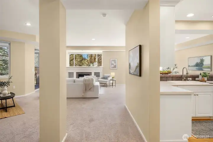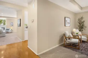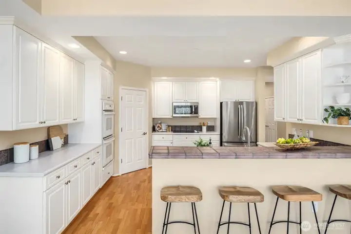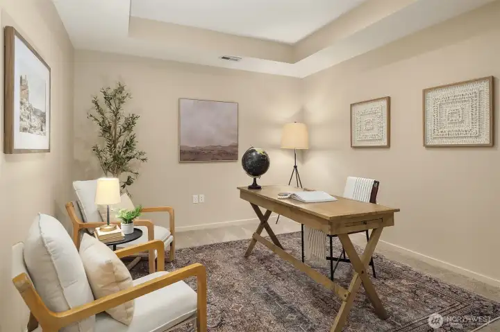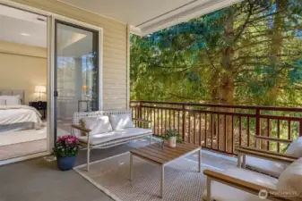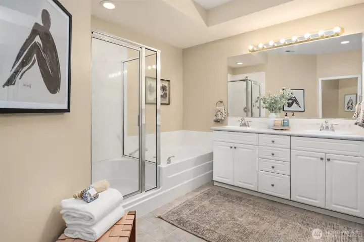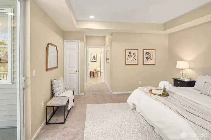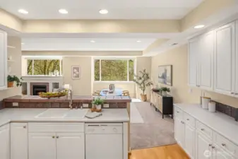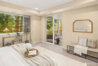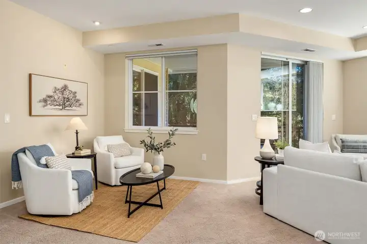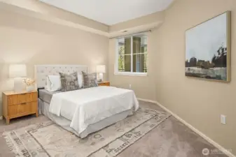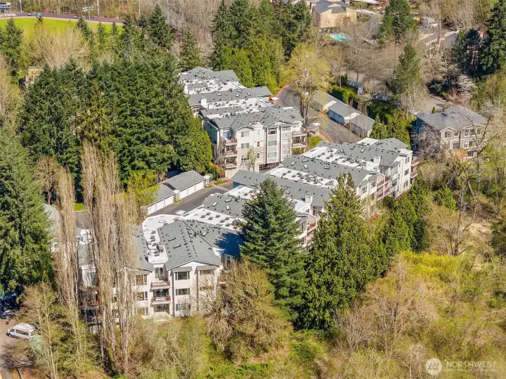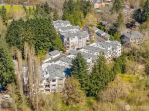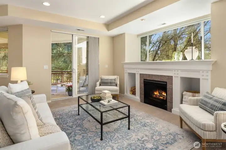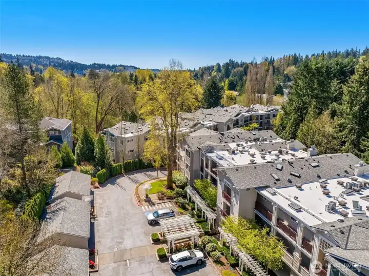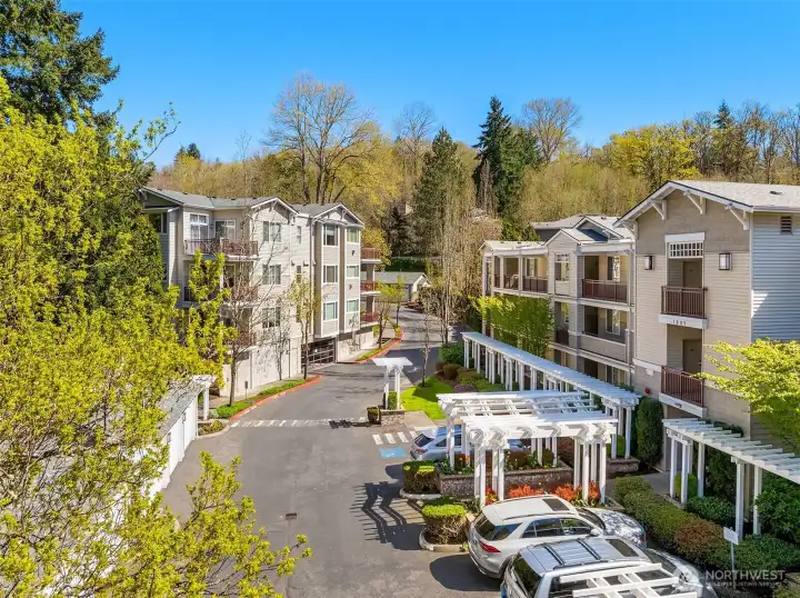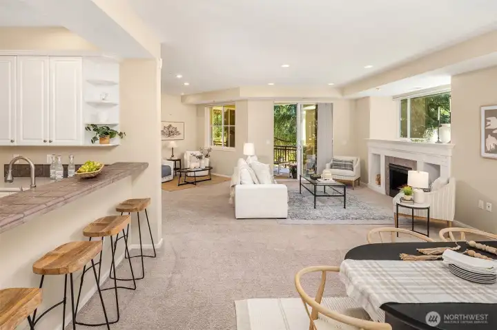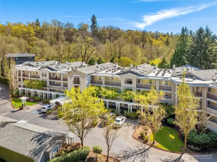 Welcome to The Arbors—a peaceful, verdant retreat you'll love to call home. Nestled on a quiet dead-end street, this gated community offers privacy, security, and an unbeatable Bellevue location near Bannerwood Park. Surrounded by lush trees, this light-filled 2-bedroom, 2-bathroom home boasts Southern exposure, creating a bright, serene space. The single-level layout is designed for comfort and versatility, featuring a bonus room perfect as a home office, den, or entertainment space. The spacious white kitchen provides ample storage, a full pantry, and room to explore your culinary talents. The open dining area flows into the great room, where a gas fireplace and large South-facing windows create a cozy yet vibrant atmosphere. The private patio—accessible from both the great room and primary suite is great for morning coffee or evening gatherings. The primary suite has a walk-in closet, linen storage, dual sinks, and a separate commode room for added convenience. The second bedroom, complete with dual closets, is next to the full hall bath--ideal for guests. Perfectly positioned between Downtown Bellevue and Factoria, you'll enjoy easy access to freeways, shopping, dining, and urban conveniences, all while savoring the calm of a park-like setting. The community offers ample guest parking, two secure garage spaces, three storage areas, and elevator access. This home is primed and ready for its next chapter. Don't miss this!