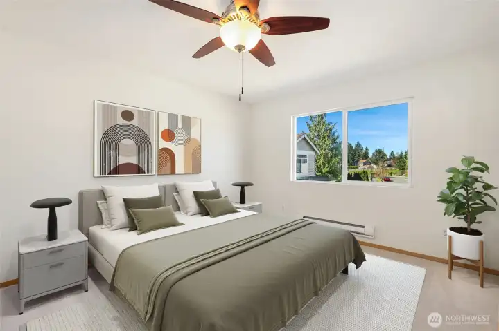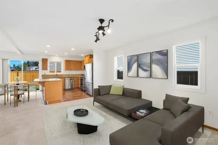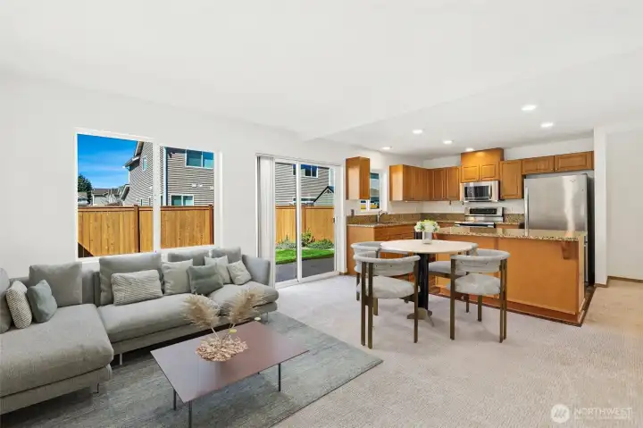 Tucked away on a quiet dead-end street in a welcoming Maple Valley neighborhood, this beautifully updated 2-bedroom, 2.5-bath home offers the perfect blend of comfort, style, and convenience. The interior was just completely and professionally painted throughout, the interior feels crisp and move-in ready, complemented by a modern kitchen that shines with both function and design. The inviting living area is open to the island kitchen and dining area and is filled with natural light from the home’s stunning westerly exposure—perfect for enjoying warm, sunset-filled evenings. Step outside to a fully fenced backyard with an extended patio, ideal for entertaining, relaxing, or letting pets play. Upstairs, you’ll find a thoughtfully designed layout with 2 bedrooms and 2 bathrooms, one with a walk in closet! There is also a versatile alcove—perfect for a home office or desk space—along with the convenience of an upstairs laundry room. Additional highlights include a spacious 1-car garage with ample driveway parking and a brand-new roof installed in October 2024—providing peace of mind for years to come. Located just minutes from 4 Corners shopping area and there is a a community park featuring dog area and playground, this home offers both tranquility and accessibility in one of Maple Valley’s most desirable area. Tahoma Schools!