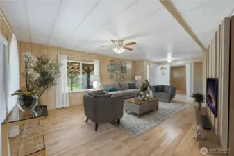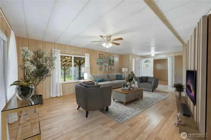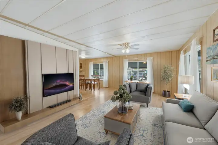 Welcome to easy, low-maintenance living in this beautifully updated 2-bedroom, 1.75-bath home in the well-kept 55+ community of Riverside Villas! Situated on a desirable corner lot, this spacious 1,236 sq ft double-wide offers a bright, open floor plan designed for comfort and functionality. Step inside to find newer flooring, updated appliances, and abundant natural light—including a skylight that adds warmth to the living space. The layout flows seamlessly from the living area to the kitchen and dining room, making it perfect for both everyday living and entertaining. Recent upgrades provide peace of mind, including a newer roof and a newly built carport for covered parking. Enjoy outdoor living on the large, entertainment-sized deck—ideal for relaxing or hosting guests. Accessibility features include a convenient ramp, offering ease of entry. The home also includes two generously sized bedrooms and well-appointed bathrooms for added comfort. Located in a pride-of-ownership community with a clubhouse and well-maintained surroundings, this home offers both convenience and connection. If you’ve been looking for a move-in ready home with thoughtful updates and great outdoor space, this one is worth a closer look—schedule your showing today!