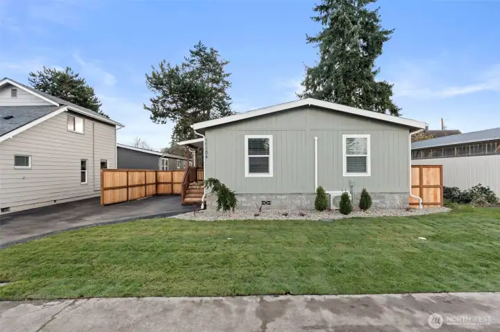 Brand new manufactured home condo designed for easy, modern living! This bright and efficient floor plan offers a spacious open living area, stylish kitchen with large island, and a flexible bonus space perfect for dining, a home office, or hobby area. The primary suite features a walk-in closet, with two additional bedrooms and a full bath for added versatility. Enjoy the built-in covered porch, fully fenced yard, easy-care landscaping, and private alley access with dedicated parking. Ideal for those seeking a low-maintenance lifestyle without sacrificing comfort or function. Conveniently located just minutes to I-5, restaurants, downtown, and Centralia College in Centralia. Affordable $100/month condo dues include water and sewer!