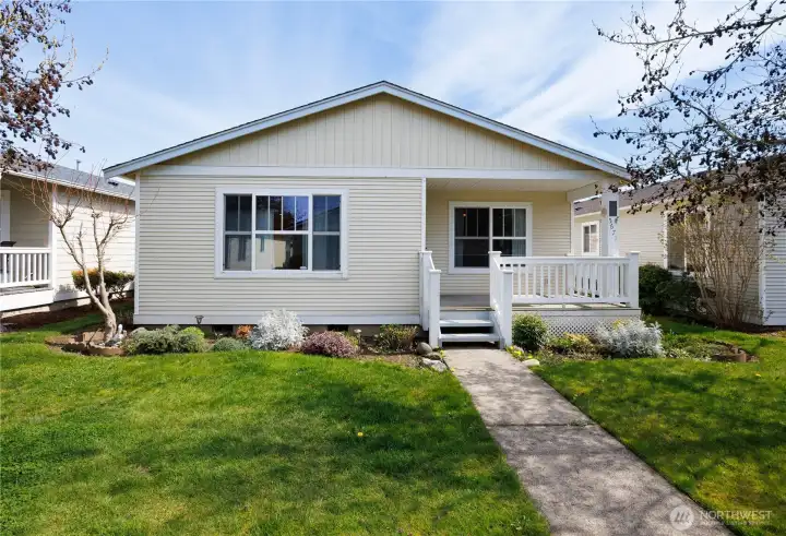 Welcome to this adorable, single-level home in the desirable 55+ community of Correll Park. This 2-bedroom, one-bath one-level home offers easy, accessible living. This home feels brand new with new luxury vinyl flooring throughout and fresh interior paint. Lots of natural light fills the whole home. Newly installed sunshade in front room. As a standalone unit with no shared walls, it provides privacy while still offers a strong sense of community. Enjoy the outdoor space out on your extra wide covered porch. Fairly new water heater. All appliances stay. Within blocks of all the amenities Ferndale has to offer. Large garage has plenty of storage and a ramp to entrance. The community building offers a kitchen, pool table, and a comfy sitting area where community activities take place or private events. The low HOA’s covers road and lawn care giving you a low maintenance lifestyle. Come be apart of this friendly active community.