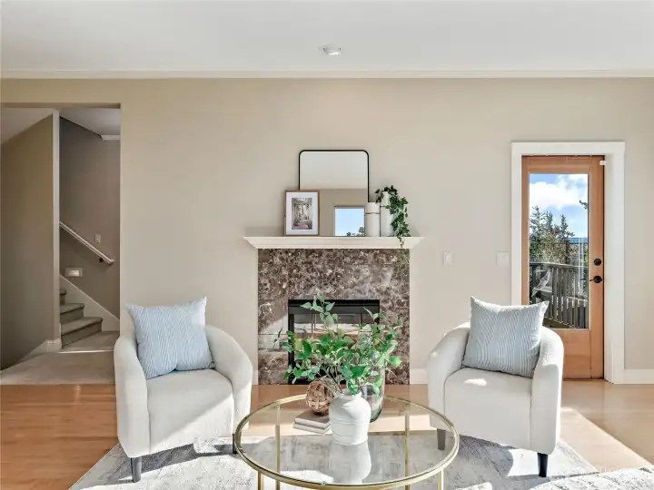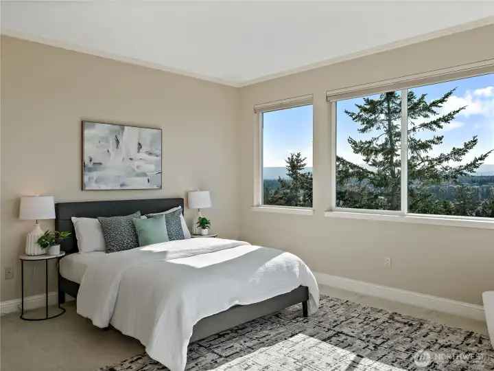 Quite simply, some of the most stunning views in all of Port Townsend. This well-designed Northwest home checks every box. The main floor features an open great room with kitchen, dining, and living areas, all framed by sweeping water and mountain views. Upstairs, the primary bedroom places you at the very heart of the Olympics. The lower level offers a versatile den/office/third bedroom, perfect for guests or working from home. The home is outfitted with modern stainless appliances and radiant heating for efficient, whole-home warmth. The builders thoughtfully included elevator-ready infrastructure for future convenience. Outside, professional landscaping strikes the perfect balance — manageable in size yet beautifully appointed, with an outdoor seating area perfectly positioned for evening sunsets. Tucked on a quiet dead-end street, the setting is as peaceful as it is private. A true Port Townsend gem!
