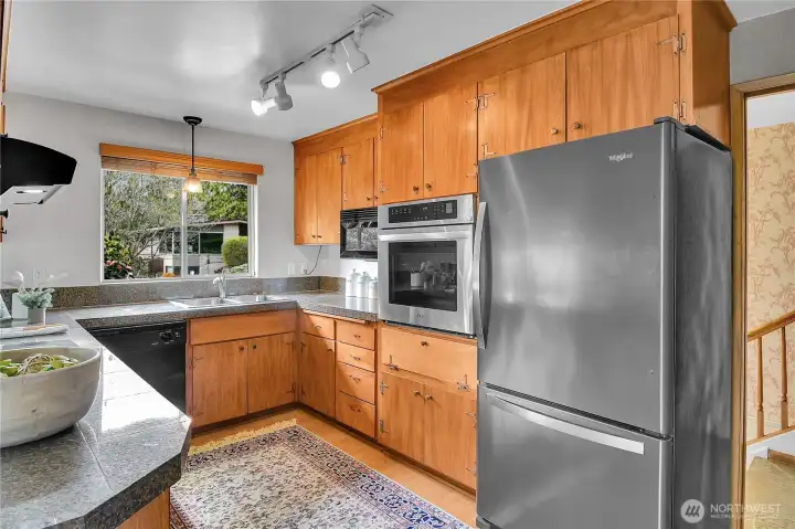 Located in the heart of Lake Forest Park this 4 bedroom, 3 bath home sits on a lovely 9200 square foot lot. The main level has 3 bedrooms. The primary bedroom has its own bathroom. There are hardwood floors throughout the main level. The heart of the home is the large kitchen that opens to a cozy family room with a gas fireplace and access to the side deck. The living room has walls of windows and a fireplace as well. A carpeted stairwell takes you down to the lower daylight level with a family room, fireplace, one large bedroom, utility room and access to the 2 car garage. Welcome home!