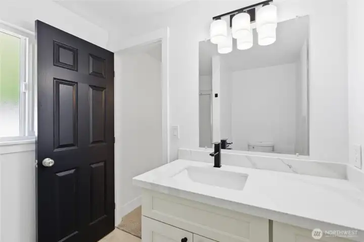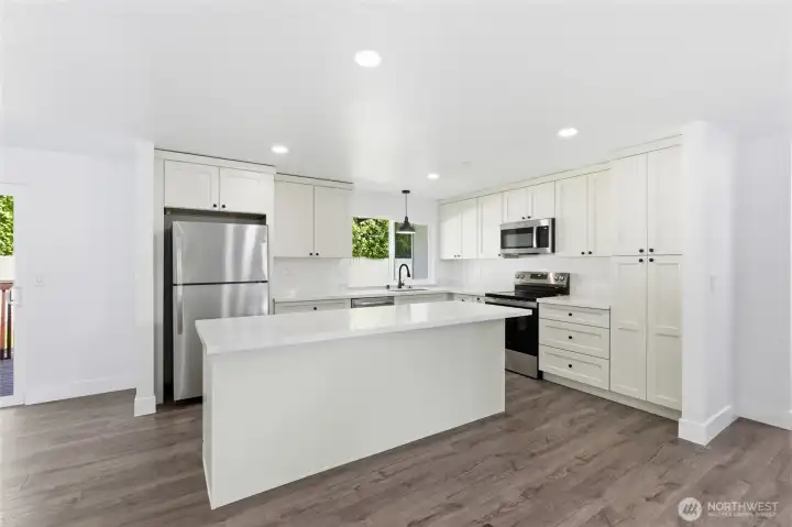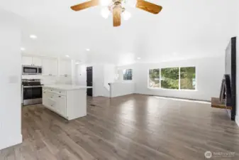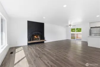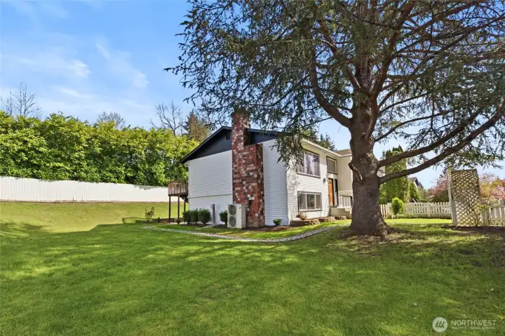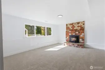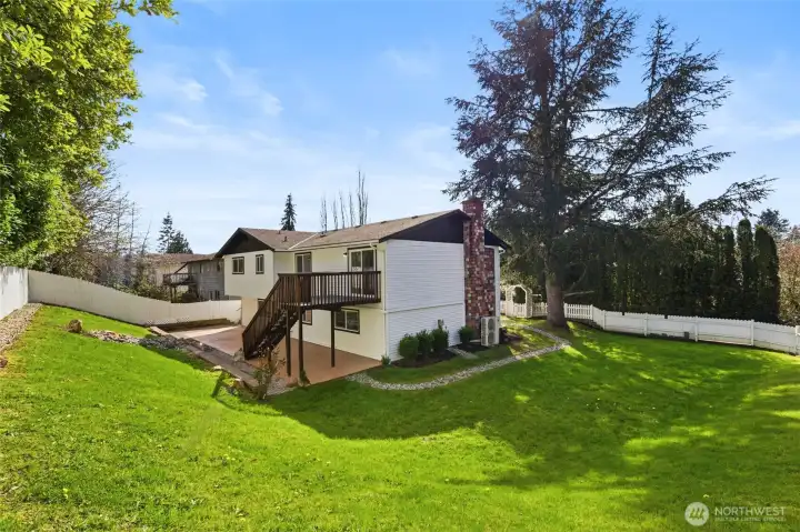 This 2,466 sq ft Marysville residence offers a functional multi-level layout and a comprehensive interior refresh. The home features two fireplaces for comfort on both levels. Outside, the patio is enhanced by a waterfall feature, creating a tranquil backyard atmosphere. Inside, the home has been updated with all-new cabinetry, appliances, and fixtures, complemented by fresh paint, new trim, and new windows throughout. The floor plan provides versatile living spaces finished with a blend of new laminate hardwood and new carpet, all kept comfortable year-round with central AC and an attached garage. This property provides easy access to community amenities including a local playground and nature trails.