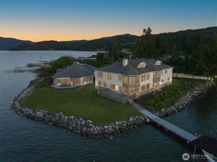 Own the POINT: A Stunning Estate, Discover the unparalleled beauty of this remarkable estate on Lake Whatcom, where luxury meets serenity. This magnificent multi-level home features 6 spacious bedrooms and 8 elegant bathrooms. As you step inside, you are greeted by exquisite solid cherry trim, doors, and cabinets that exude quality. The stunning Maple floors add warmth and character, while the custom kitchen, perfect for entertaining friends. The impressive two-story grand entry and living room create an inviting atmosphere, enhanced by the abundance of natural light pouring through oversized windows.This property originally envisioned as a turn-of-the-century hotel resort......experience lakeside living at its finest.