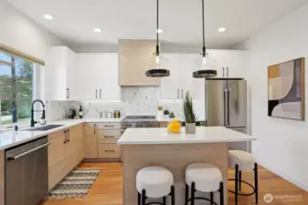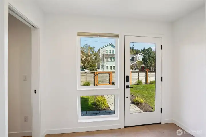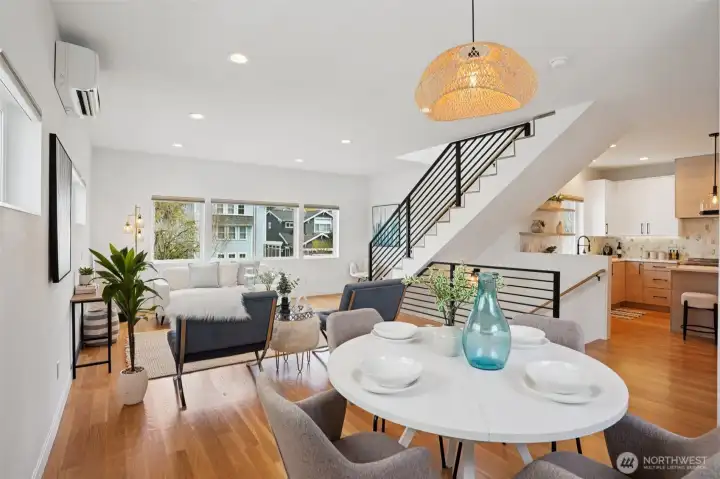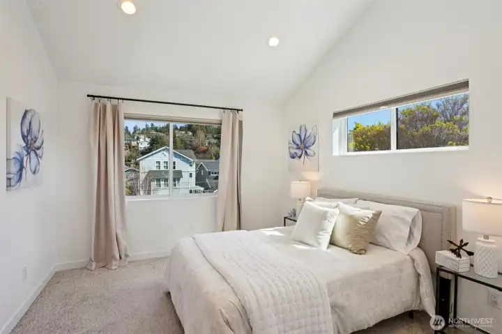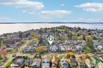 Live moments from the shore in this light filled home just two blocks from Alki Beach. A fenced front yard welcomes you, while inside an open concept kitchen flows seamlessly into the living room for easy connection and everyday comfort. A walk in pantry with added shelving keeps storage simple and organized. Vaulted ceilings in both the primary and second bedroom enhance the sense of space, and two oversized sliding glass doors bring in abundant natural light. The lower bedroom features a sliding glass door that opens to an outdoor area, while the primary bedroom includes a sliding door that brings in light and fresh air. At the top of the home, a fourth floor rooftop deck offers peek a boo views of Elliott Bay and beyond, creating a peaceful place to relax. A private patio adds even more outdoor enjoyment. The garage offers built in loft storage plus an EV outlet, with access from a private alley driveway. The street itself is notably wider than most in the area, creating an airy streetscape and easier access. Enjoy a remarkably low $25 HOA fee that covers common area insurance. Leave the car behind and stroll to favorites like Harry’s Beach House, Cactus, Alki Pho, Alki Coffee Co, Ben & Jerry’s, Spud Fish and Chips, and the critically acclaimed neighborhood restaurant Il Nido. Also within walking distance is Alki Elementary School and two neighborhood parks. This location blends coastal energy, neighborhood charm, and everyday convenience.