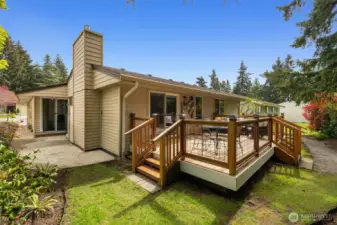 Sunshine, gorgeous gardens & outdoor enjoyment await in this Huntington Park gem! This free standing 2 bedroom, 2 bathroom rambler with 2-car garage is nestled on a quiet cul-de-sac in Des Moines' most sought-after 55+ community. You'll feel worlds away from the hustle of busy life in this peaceful, park-like setting. The bright, open layout has great natural light pouring through abundant windows & solartubes above. Oak hardwoods sparkle and shine, flowing from the spacious living room w/ gas fireplace into an inviting dining area & a beautifully remodeled kitchen, complete w/ granite counters, stainless steel appliances, tons of storage space & a sweet breakfast nook. Indoor & outdoor living blend together seamlessly just in time for summer days - sip morning coffee on the east-facing paver patio in front, BBQ to your heart's content on the patio off of the kitchen, or go through the sliding doors onto the massive back deck overlooking your private yard surrounded by lush greenery. Updated for modern living w/ remodeled bathrooms, vinyl windows & a new water heater + PREINSPECTED for your peace of mind. Plenty of room for parking, storage & all your projects between the attached 2-car garage & the driveway. Fantastic, well-run HOA w/ manageable dues (that cover your lawn mowing), Clubhouse w/ communal events like Trivia Night, Mahjong, exercise classes, & Happy Hours, pool/hot tub, & 2+ miles of walking trails. Begin your new adventure here.