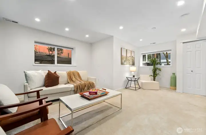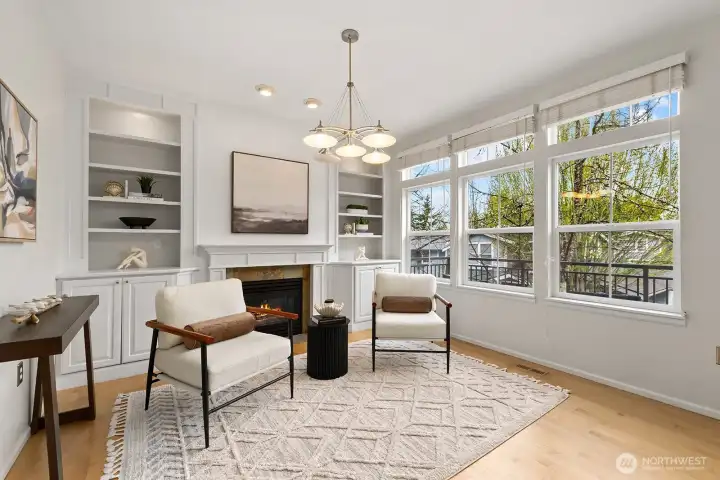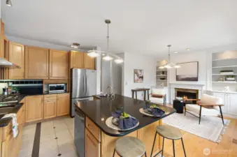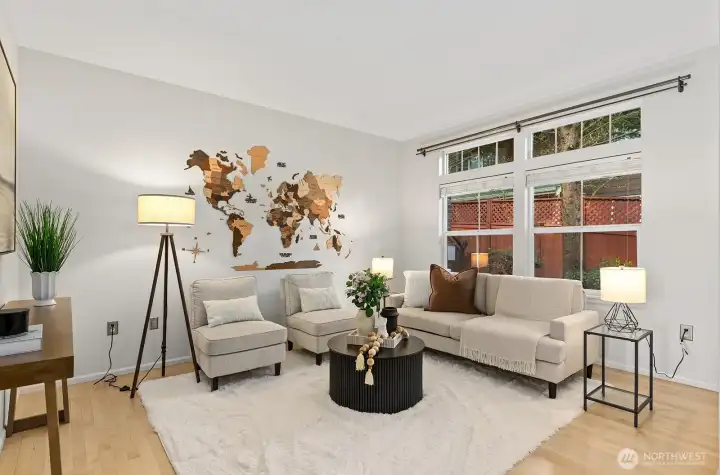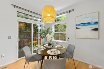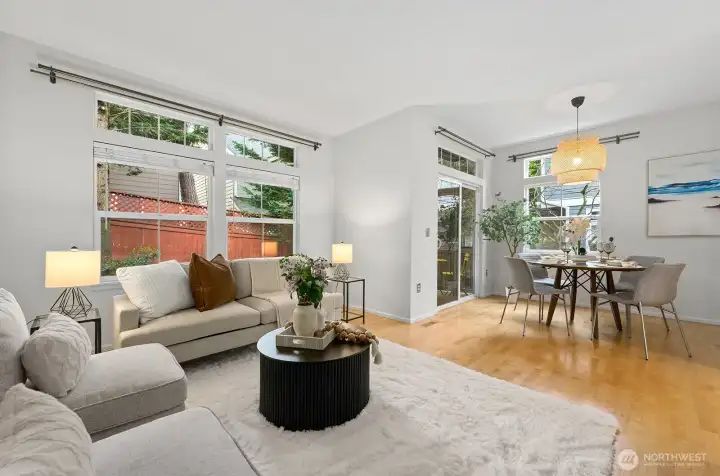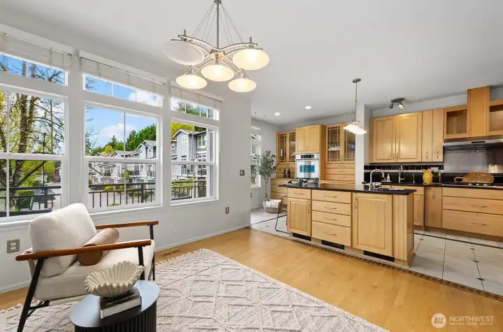 Welcome to this stunning, light-filled modern end-unit townhome in the heart of Rose Hill! Ideally located just minutes from Kirkland’s vibrant shopping, dining, parks, and waterfront, this home offers the perfect blend of style, comfort, and convenience. Beautifully updated 3-bedroom, 2.5-bath home featuring spacious living areas, including a great flex area off kitchen—perfect for entertaining, everyday living or dining. Bright and cheery chef’s kitchen complete with stainless steel appliances and hood, an oversized island with chef’s sink, and thoughtful design. Enjoy indoor-outdoor living with two private decks—ideal for relaxing or hosting guests. Harwood flooring adds warmth and sophistication. 5-piece primary bath. Lower level has large rec room or could be used as bedroom/flex area, office upstairs could potentially be used as bedroom. Newer H20 heater 2022, smart washing machine 2022, smart top control dishwasher 2023. Attached 2-car garage and additional driveway parking provide convenience and flexibility. Beautiful setting and outlook. With a well-managed HOA in quiet and well maintained development. Walkable access to shops and restaurants, and an unbeatable location and minutes from Costco. Close to the coming soon "NE 85th Street Station"--residential, retail, park and linked by transit. Don’t miss this exceptional opportunity to own in one of Kirkland’s most desirable neighborhoods! This home has it all!