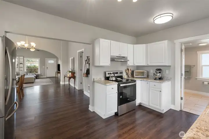 Light filled and full of charm! This craftsman-style home features high ceilings large windows, and a cozy breakfast nook. A versatile office/flex space perfect for working from home, hobbies, or extra living space. Remodeled in 2020, the home offers a fresh, updated feel throughout. Conveniently located with quick access to I-5 and just minutes from downtown Centralia's shops, dining, and amenities. The fully fenced yard provides plenty of space to relax, garden, or entertain, plus an outbuilding for extra storage.