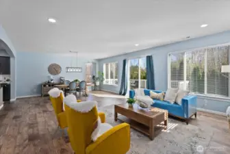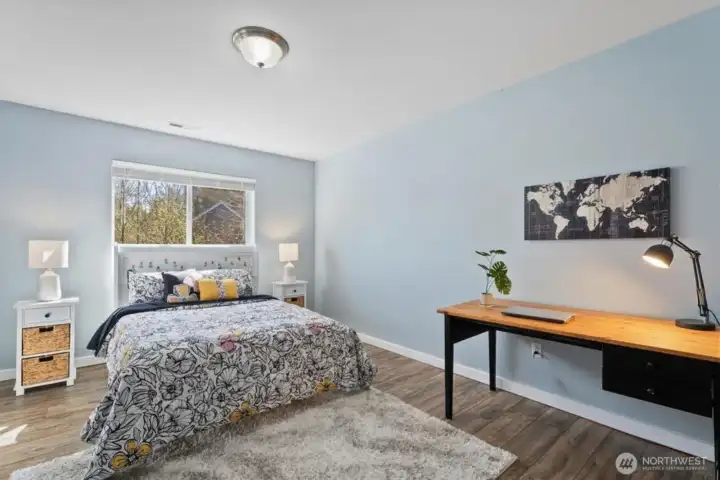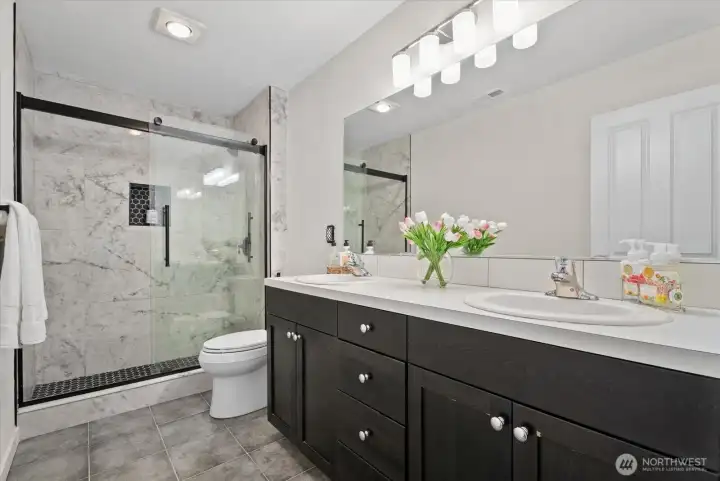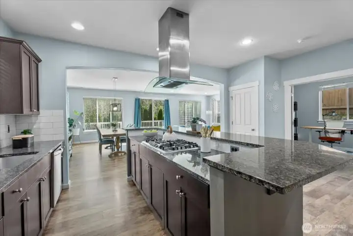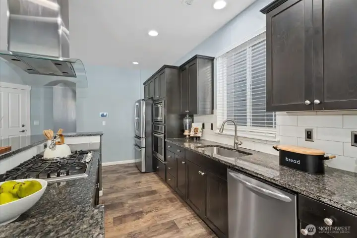 Welcome to this beautifully appointed 5-bedroom home in the sought-after Westlake Crossing community of Lake Stevens, where thoughtful design and modern comfort come together effortlessly. Built in 2019 and offering 3,087 sqft, this move-in ready home features a bright, open layout with soaring ceilings, abundant natural light, and luxury vinyl plank flooring throughout. The kitchen is both functional and refined, featuring an oversized granite island, gas range with vent hood, stainless steel appliances, pantry, and abundant storage, ideal for everyday living and entertaining. The great room with a cozy gas fireplace flows into the dining area and out to a custom deck overlooking a private greenbelt, creating a peaceful indoor-outdoor connection. A main-level bedroom and ¾ bath provide flexibility for guests, multi-generational living, or a home office. Upstairs, the spacious primary suite features French doors, a 5-piece bath with soaking tub and tile shower, and dual walk-in closets, including a custom closet system. Three additional bedrooms, a ¾ bath, upstairs laundry, and a large bonus room offer flexible living space. Additional highlights include fresh interior paint, EV charging, solar panels, tankless water heater, low-maintenance landscaping, sprinkler system, and ample storage. Conveniently located in Lake Stevens near parks, shopping, dining, and major commuting routes including Hwy 9, Hwy 2, and I-5, within the highly regarded Lake Stevens School District.