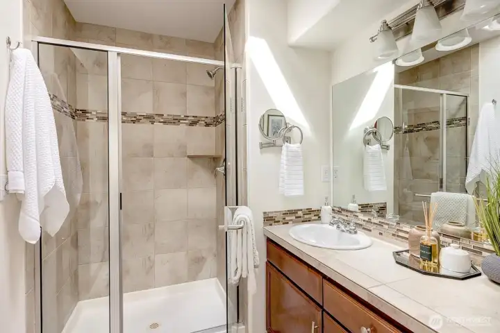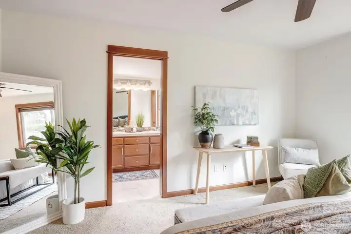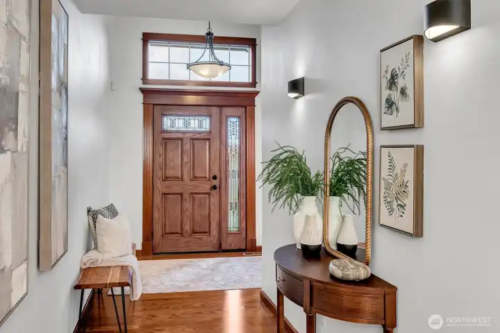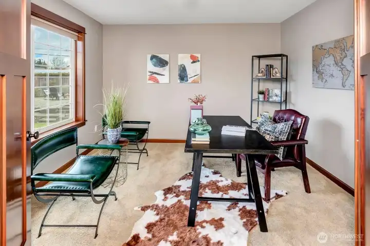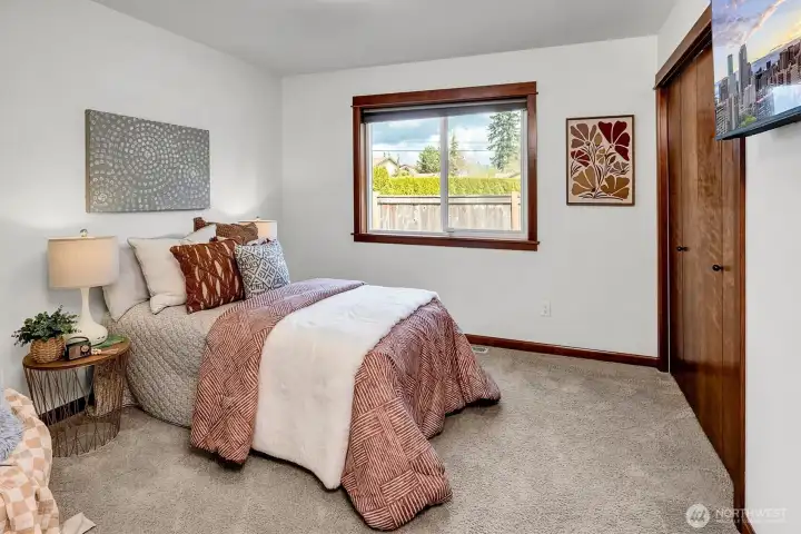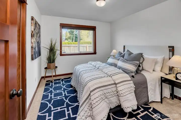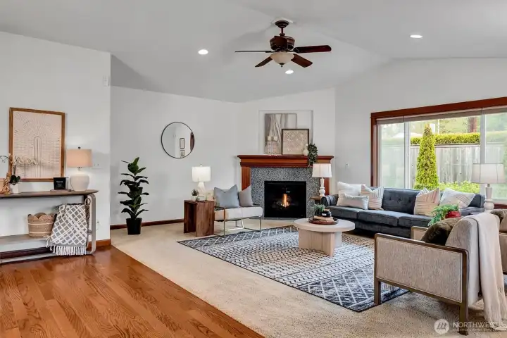 A rare opportunity to own a newer-built, recently updated true single-level rambler that seemlessly blends style and comfort. An open-concept layout enhances both entertaining and everyday living, offering a natural flow between spaces. The gas fireplace creates year-round warmth and ambiance. The kitchen features granite countertops, a spacious center island and a new LG SS appliance suite including a microwave, refridgerator, oven w/air fry & convection options and dishwasher. The primary suite offers a private en-suite bath complete with a soaking tub, Two additional bedrooms are thoughtfully arranged on a single level with no interior stairs for effortless living. Just off the entry, a dedicated office or bonus room adds flexibility. A rare 3-car garage provides abundant parking and storage. Recent updates include fresh interior and exterior paint, along with energy-efficient solar panels, skylights that bring in natural light, and stylish updated sconce lighting throughout the hallways. This home is ideally positioned adjacent to a private spacious community lawn, perfect for large gatherings and entertainment. A spacious workshop and an additional storage shed. Covered outdoor areas provide the perfect setting for BBQ's, as well as a firepit for summer nights or year-round enjoyment. Just minutes from Mill Creek shopping and amenities. EZ access to I-5 & I-405 ensures seamless commuting and connectivity!